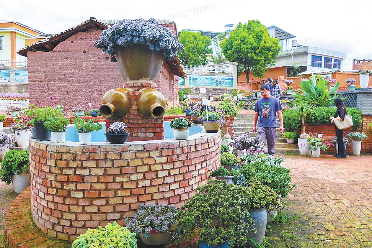 江川区安化乡光山村将发展庭院经济与多肉特色产业相结合,积极探索“庭院经济+产业发展”新模式,鼓励群众利用庭院空地种植多肉盆景,发展餐饮、民宿、电商直播,增加群众收入。目前,光山小组5户农户打造了多肉特色庭院经济,将多肉元素与村庄风貌深度融合,打造了占地2亩的多肉庭院超市。通过盘活农户庭院闲散空间资源,以点带面发展不同类型、多种经营模式的庭院经济,把农户庭院的“方寸地”打造成群众致富的“大舞台”。