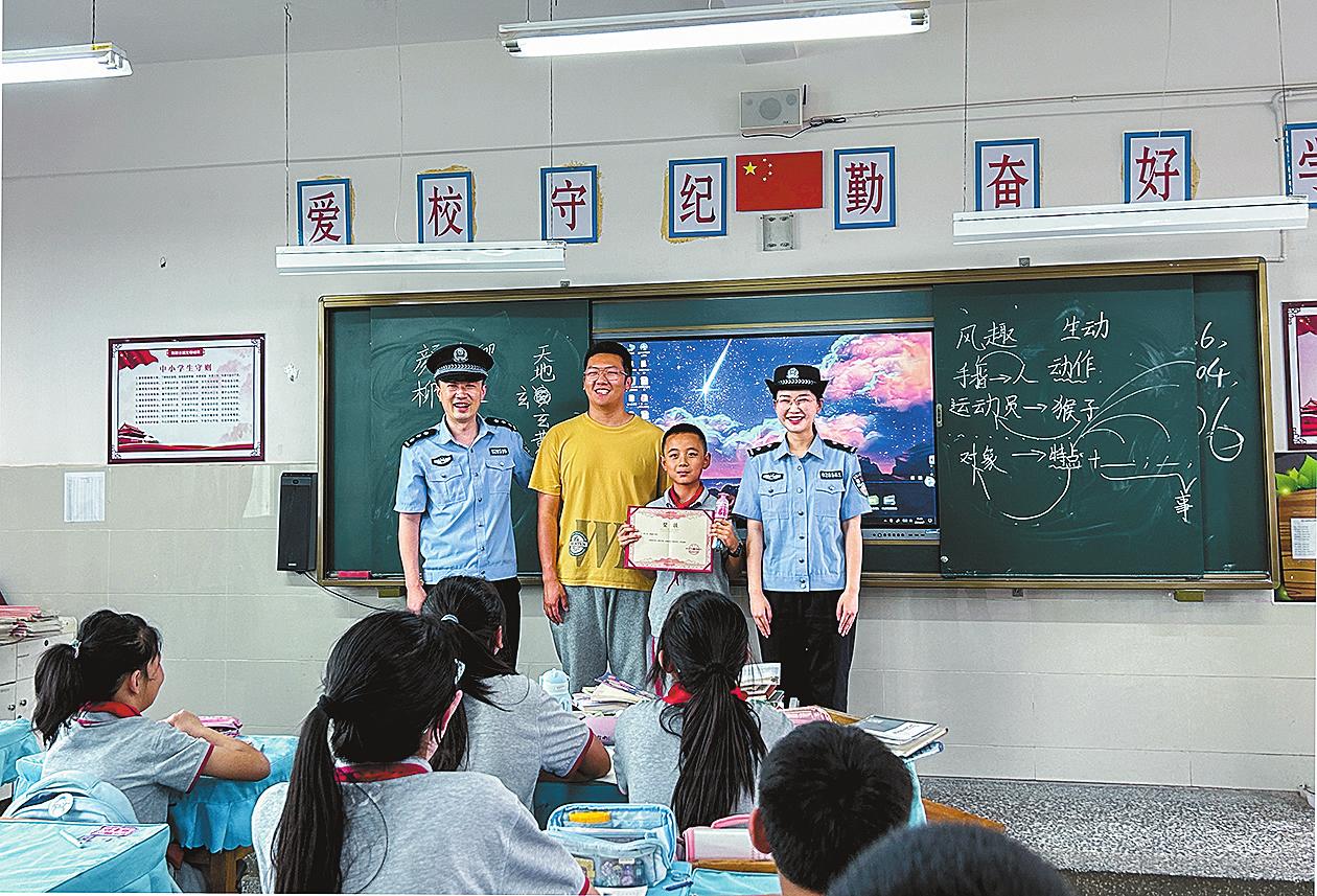本报讯(通讯员 李雨薇 文/图)近日,7名小学生捡到手机后及时交到澄江市公安局凤麓派出所。事后,派出所民警来到孩子们所在学校公开表扬。 6月1日下午,一群小学生走进凤麓派出所。“警察叔叔,我们刚才在奶茶店捡到一部手机。”几名小学生七嘴八舌地告诉值班民警事情经过。原来,凤山小学的7名小学生在商店买奶茶时捡到一部手机,由于孩子们无法找到失主,想到平时老师、父母教育他们捡到财物要及时交给警察叔叔,便将手机送到凤麓派出所。 民警了解情况后,立即查找并很快确认了失主。下午4时许,失主匆忙来到派出所领回了自己的手机。听闻是7名小学生捡到自己的手机送到派出所,失主深深感动并连声道谢。 6月7日上午,凤麓派出所民警来到7名小学生就读的凤山小学,为拾金不昧的孩子们颁发奖状,并送上小礼物。 “我们希望通过公开表扬这种方式,带动更多小朋友向榜样学习,传递正能量。”凤麓派出所民警说。 |