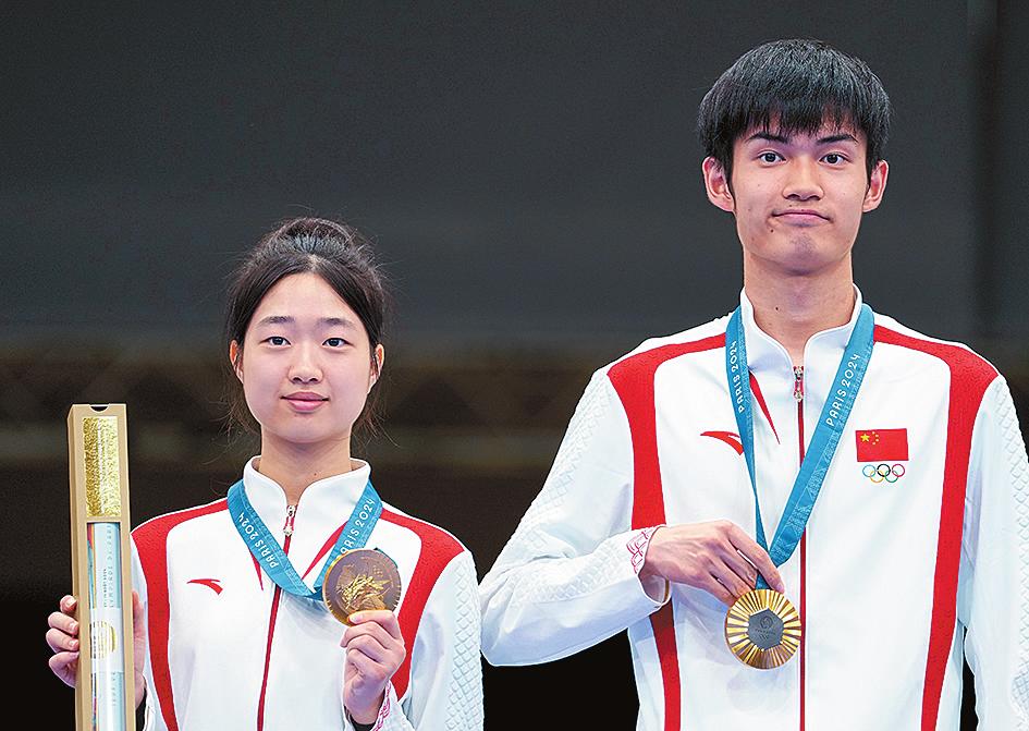 中国选手黄雨婷、盛李豪夺得巴黎奥运会首枚金牌