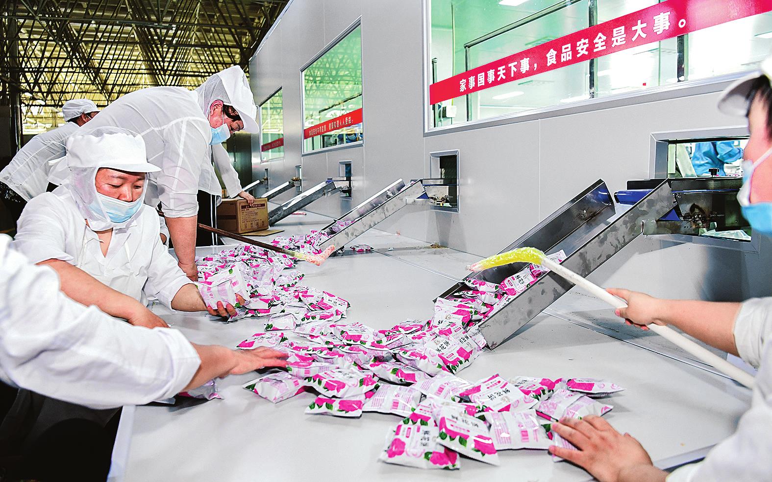 日前,在云南红塔食品有限责任公司生产车间内,工人正忙碌着生产“红塔牌”系列食品。近年来,我市立足特色优势、产业基础和现代农业发展趋势,加快构建地方特色突出、综合实力凸显的现代绿色食品加工产业体系。截至今年5月,全市拥有绿色食品加工企业674户,实现规上工业产值41.95亿元。