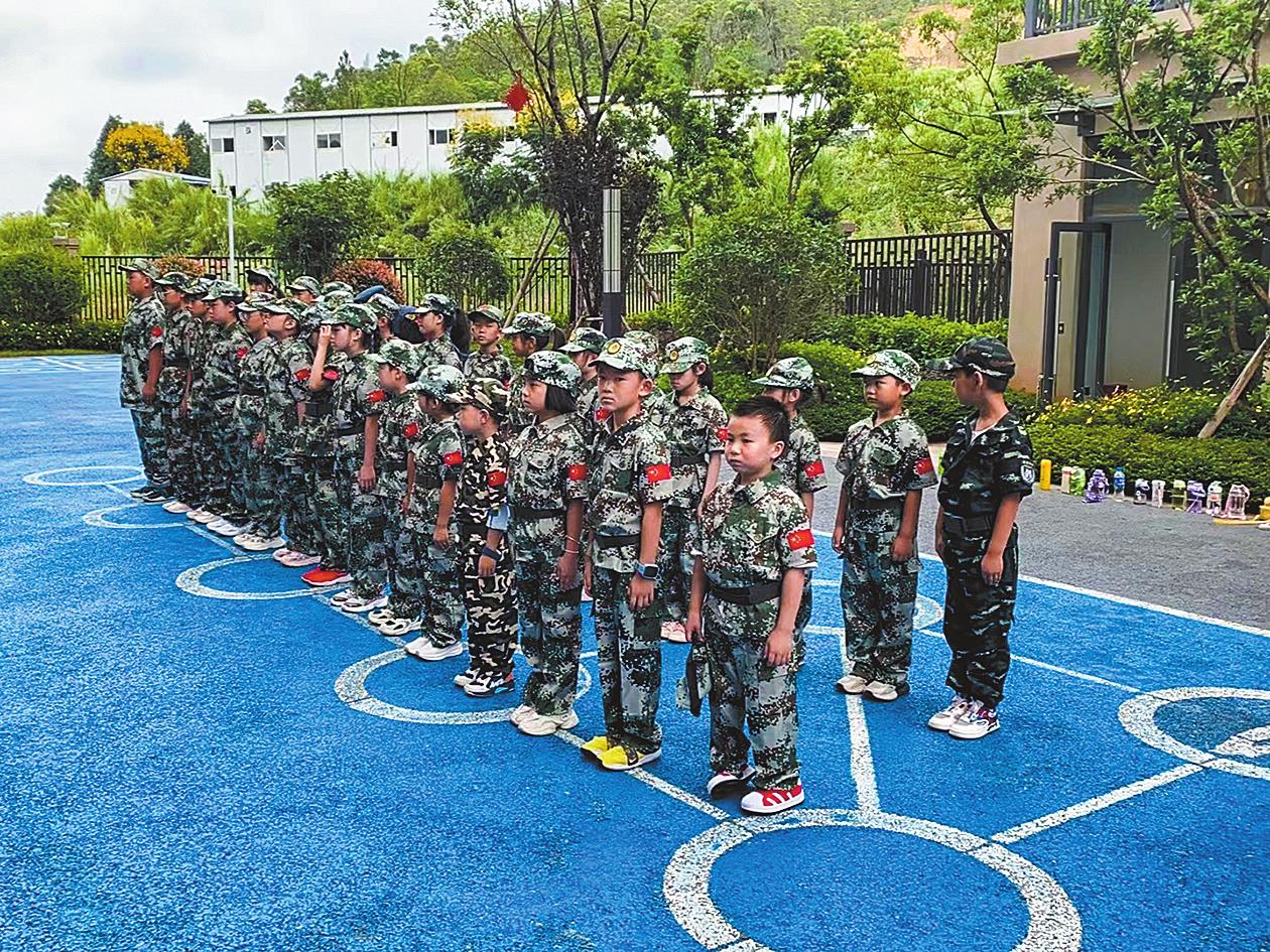 为丰富辖区儿童暑期生活,7月29日,红塔区凤凰街道南祥社区开展“小民兵”训练营活动,辖区28名孩子参加,其中最小的7岁,最大的12岁。在为期两周的训练中,通过丰富多彩的军事体验,增强孩子国防意识,鼓励孩子们以军人的标准严格要求自己,在训练中磨砺意志、锤炼品格。
