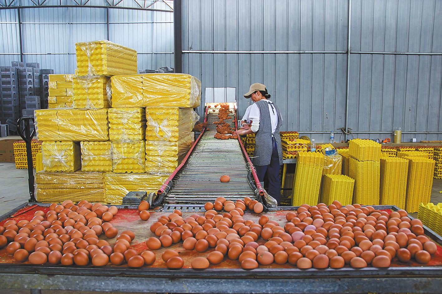 近日,在位于峨山县小街街道由义社区的峨山县锦润禽业有限公司全自动智能蛋鸡养殖场,一枚枚新鲜的鸡蛋被智能化传输带传送到分拣车间,经筛选、分拣后装箱,运往各地市场。目前,该养殖场已建成标准化鸡舍3栋,养殖蛋鸡20万只,每天产蛋量在16万枚左右,鸡蛋主要销往玉溪、昆明、广州等地,年产值可达3200万元。此外,凭借全程智能化管理,实现了饲喂、控温、清粪自动化。