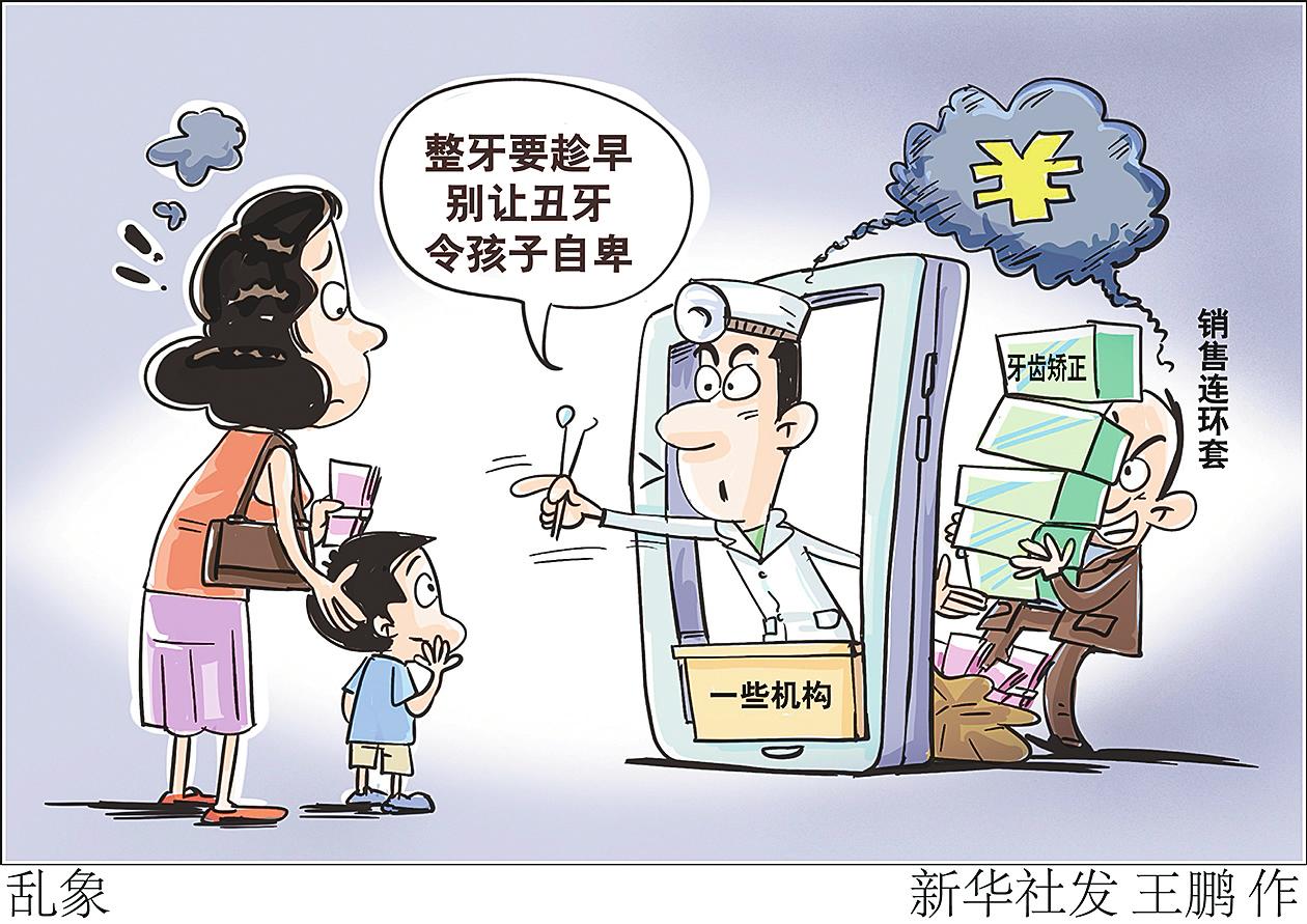 “牙齿矫正不要错过发育期”“别让丑牙令孩子自卑”……“新华视点”记者调查发现,暑期是儿童整牙高峰期,近期社交平台上有许多类似的广告宣传。越来越多低龄儿童进行牙齿矫正,让孩子身心健康面临多重风险。