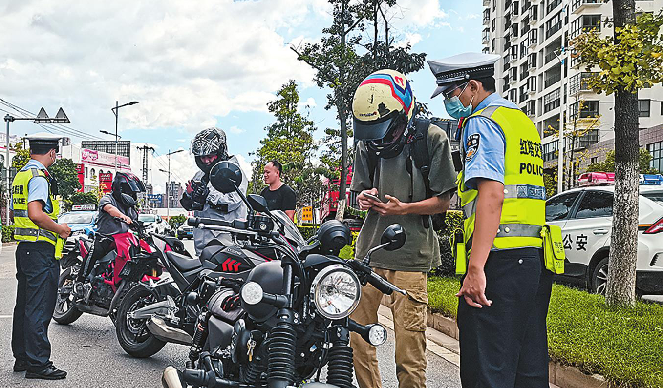 近日,玉溪市公安局红塔分局交警大队紧盯重点区域、重点时段、重点人员、重点车辆,全链条打击“炸街”扰民、追逐竞驶、非法改拼装、涉牌涉证、酒驾醉驾、超速超员、闯红灯、不佩戴安全头盔等交通违法行为,净化道路交通环境。交警重点严查严处非法改装、“飙车炸街”等交通违法行为,积极消除安全隐患。