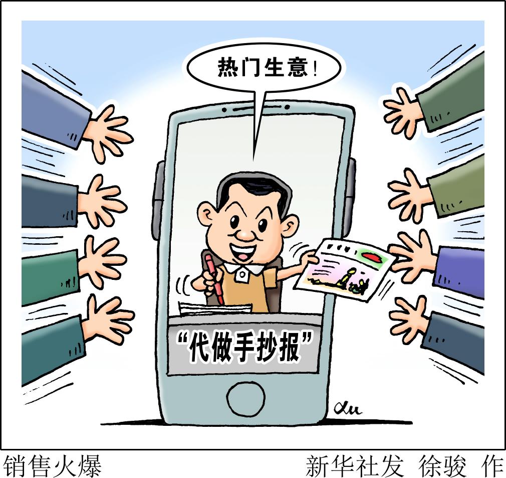 不少学生时常要完成拍照、拍视频等留痕类作业,以及各种网络课程打卡任务。尤其值得注意的是,困扰学生多年的手抄报类作业任务量仍较多,以致“代做手抄报”在电商平台竟成热门生意,有的店铺销量高达20万单。