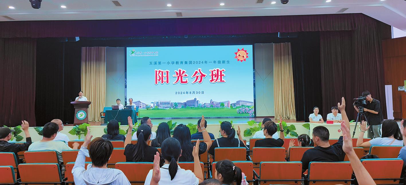 | | | 8月30日,玉溪聂耳小学教育集团2024年一年级新生阳光分班仪式举行。在人大代表、政协委员、家长代表的监督下,经过分班系统介绍、模拟分班、家长实操系统进行分班、班主任抽签确定任教班级、现场公示等流程,两个校区的600多名新生顺利完成了分班。据了解,玉溪聂耳小学教育集团的阳光分班已经坚持了七年,旨在促进教育公平,切实保障学生平等接受教育的权利,进行教学资源均衡配置。 本报记者 沈阳 李梅 摄 |  | | | 8月30日,玉溪第一小学教育集团采取电脑随机派位的方式,对文化、山水、紫艺、溪源四个校区1800余名2024年一年级新生进行阳光分班,班主任抽签决定任教班级,均衡搭配教学资源。我市自2018年全面推行阳光分班以来,多所中小学、幼儿园按照公平、公开、均衡、透明、随机和全面的原则对入学新生实施阳光分班,促进教育公平落地见效。 本报记者 冯天娇 摄 |
