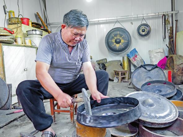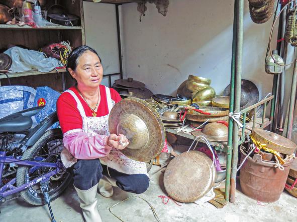 通海县杨广镇的蔡家山是一个有着600多年历史的古村落。明朝洪武初年,蔡氏先祖蔡住城从福建泉州随明军“移民”入滇,后落籍通海以打制铜器为生,最初加工油翎帽碟、铜刀把、铜勺,后来发展到加工种类繁多的炊具、餐具、响器等。 二十多年前,蔡家山做铜响器的就有十四五户,如今,整个村子仅剩“铓锣大王”蔡从伟、“长号专家”蔡春武、蔡从勇父子及“响器之家”蔡从伦、岳萍夫妇。他们做的铜响器远销大理、元阳、景洪、贵州等地,有的经生意人带到河口,再转卖到越南,或者带到景洪、瑞丽,再转卖到老挝、缅甸。从20世纪80年代初开始,每年大理三月街,他们总能在那里找到最好的买家,并以最快的速度将铜货销售一空。时至今日,蔡家山的铜响器早已扬名国内外。 “铓锣大王”蔡从伟 8月的一个清晨,记者来到蔡家山,找到了远近闻名的“铓锣大王”蔡从伟。他家的铜器作坊里发出“叮叮当当”的敲打声,走近才知,他在里面调试铜铓的乐音。作坊前面是一片绿油油的菜园子,与作坊并排的是几棵果树,在清亮悦耳的铜铓声中,又红又大的石榴随晨风轻轻摇晃。 蔡从伟看到有人来,从作坊里出来。此时,刚好新平县平甸乡磨皮村委会的非遗传承人杨学林打来电话。原来他们村的磨皮花鼓队使用了几代人的那副铜镲已经敲成碎片了,需要换一副直径为40厘米的新镲,但他又担心买不到声音清脆入耳的镲。记者录了一段蔡从伟亲自挑选、演奏过的镲的视频发到杨学林手机上。杨学林看完非常满意,让记者帮忙买下这副镲,再带回新平。杨学林感慨道:“想不到在我们玉溪还有这么好的手艺人,能做出这么好听的镲来。” 蔡从伟,1961年出生于蔡家山,1983年退伍归来后,就在家里跟随父亲学习打制铜勺及铜响器至今。蔡从伟家祖祖辈辈都是铜匠,但蔡从伟无法一一说清,只能上推到自己的爷爷蔡章甫那里。他小时候就见爷爷制作铜瓢、铜勺等生活用具。到父亲蔡春品时,就开始制作铓、锣等响器。蔡从伟自小就与铜器打交道,在潜移默化中,他学会了制作响器。2019年,云南民族音乐学家吴学源老师、武汉音乐学院硕士吴琼老师到他家来定制铜铓,两位老师热情地指导他如何进一步识别铜铓音质,让他受益匪浅。 希望儿子快点来拜“师” 最让蔡从伟得意的是他制作的大号铜铓走进央视歌唱类节目《同一首歌》。那年,《同一首歌》节目组走进云南时,节目制作人曾到蔡从伟这里定制了铜铓,并把它作为一种民族乐器介绍给了全国观众,节目播出后,他一直引以为豪。 近年来,蔡从伟一直担心他的手艺会失传。他的儿子名叫蔡家成,以前跟他学了一段时间手艺后外出打工。生活里,蔡从伟和儿子蔡家成交流得不多,各忙各的生意。儿子不喜欢铜匠活,认为这活计又苦又累。蔡从伟无奈地说:“以前手艺只传家里人,且传男不传女,几百年的手艺都没有失传。现在,不分男女,不分家里家外,什么人都可以传,可是现在的年轻人不愿意学,都出去外面打工。” 前几年,一位来自昆明某所大学的研究生来到蔡家山,看了蔡从伟打制的响器后,十分惊奇,异常激动,立即要拜蔡从伟为师。可是,蔡从伟没有收下这位研究生,因为他知道,学习制作响器,靠的不是一时的激情和冲动,而是几十年乃至一生的笃定坚守,蔡从伟不想枉费了他的青春时光。谈到这里,他又满怀期盼地补充了一句:“如果以后,我儿子不愿在外打工了,可能会回来跟着我学做响器。因为他有基础,学起来要容易一些。” 农民调音师岳萍 蔡从伟有一个兄弟叫蔡从伦,他家也在自家作坊里制作响器。记者来到不远处的蔡从伦家,见到了他的妻子岳萍。 1985年,岳萍嫁到蔡家山,之后跟着丈夫一起学做响器。他们家会做大大小小的铜钹、铜锣等十多种响器,大多销往昆明、大理、景洪、文山、红河等地。 她对记者说:“响器打制出来后,最后一步,也是最关键的一步,就是声音的调试,须用小铁锤慢慢调。顺利的时候,五六分钟就可以调好。不顺时,从早到晚都调不好,有时白天晚上都调不出客户需要的声音。急也没有办法,越急越调不出来,这个时候,干脆不用再调了,好好睡上一觉,等到第二天早上起来再慢慢调试。” 前些年,生意红火的时候,他家的响器供不应求,连德宏、临沧等地的商贩都来到家里,等着拿他们家的货。一件新的响器打制出来,最后调成客户需要的音质,就被他们抢着带走了。她和丈夫有很强的听力,可以根据客户需求制作各种音质的响器。 近些年来,生意有些清淡,家里还堆着一批做好的响器,她正等着客户上门来。接下来,她和丈夫会到周边乡镇的杂货街转转,看会不会有新订单。 在古装剧中看到自家做的铜号 蔡春武、蔡从勇父子制作的也是响器。与蔡从伟不同,他们家的响器更多的是大小不一的铜号。 蔡从勇四十出头才开始跟着父亲蔡春武学做铜号。之前,他在外打过工,做过生意,开过火锅店,打拼多年,最后还是决定回家,跟父亲学做铜号。他说:“从小到大,看着父亲做活,耳濡目染,现在回来,有轻车熟路的感觉。”话虽这么说,但他实实在在跟着父亲做了四五年,才算“出师”,年迈的父亲也丢开手中的铁锤,让他独当一面。现在蔡从勇能做的铜号,最长的有3米多,最短的就1米左右。 蔡从勇家制作铜号的手艺是代代相传下来的,但说起这段家族史,最早也只能上推到爷爷蔡平辅那一辈。他说:“爷爷也是手艺人,