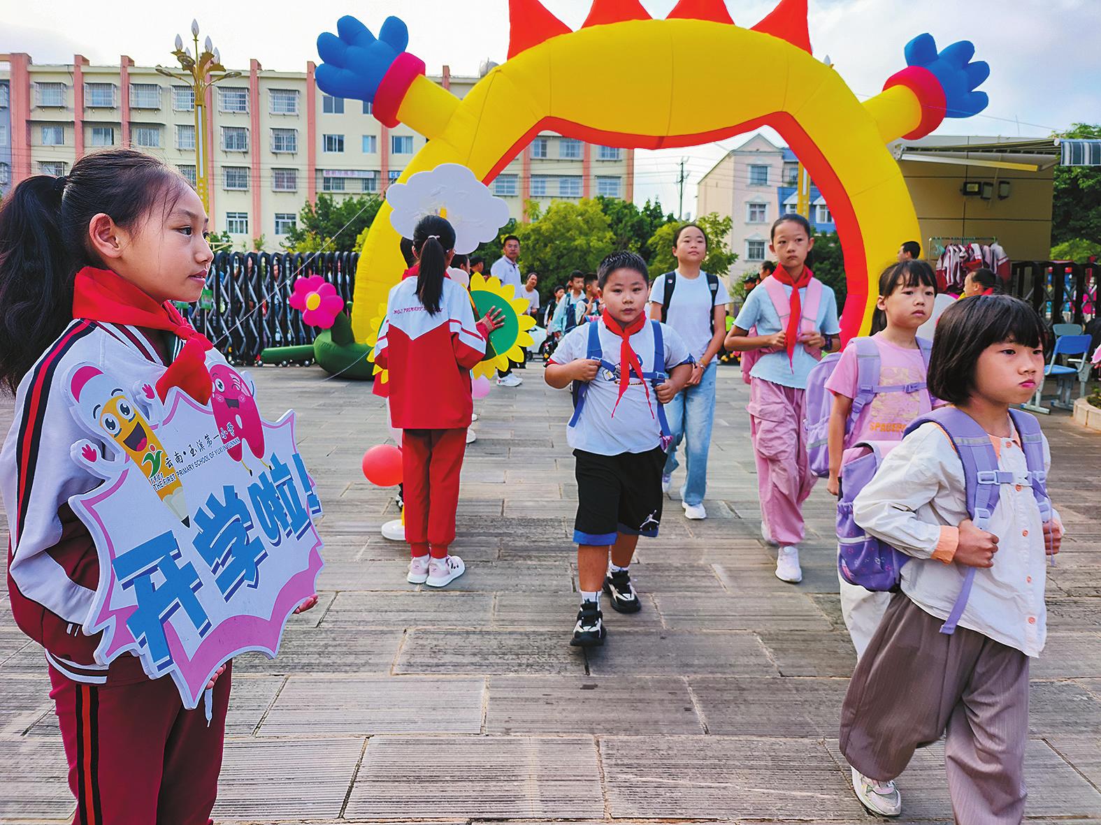 本报记者 曾梦琪 摄 |  | | | 9月1日,玉溪第一小学教育集团山水校区精心准备了满满的“开学礼”,迎接学生归校。五彩的气球、祝福的话语、交换亲手制作的书签、活力套圈……带着学校和老师浓浓的关爱,同学们迈着轻盈的脚步走进校园,开启新学年。当日,我市中小学、幼儿园2024年秋季学期全面开学。 本报记者 冯天娇 摄 |