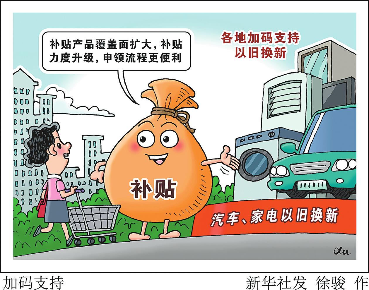 近期,中央层面拉动汽车、家电以旧换新的“升级版”政策相继出台。记者近日在北京、湖北、重庆、福建等多地市场走访了解到,各地已结合当地实际情况,出台消费品以旧换新落地细则,补贴产品覆盖面扩大,补贴力度升级,申领流程更便利,消费者换购意愿增加。 徐骏/作(新华社9月2日发)