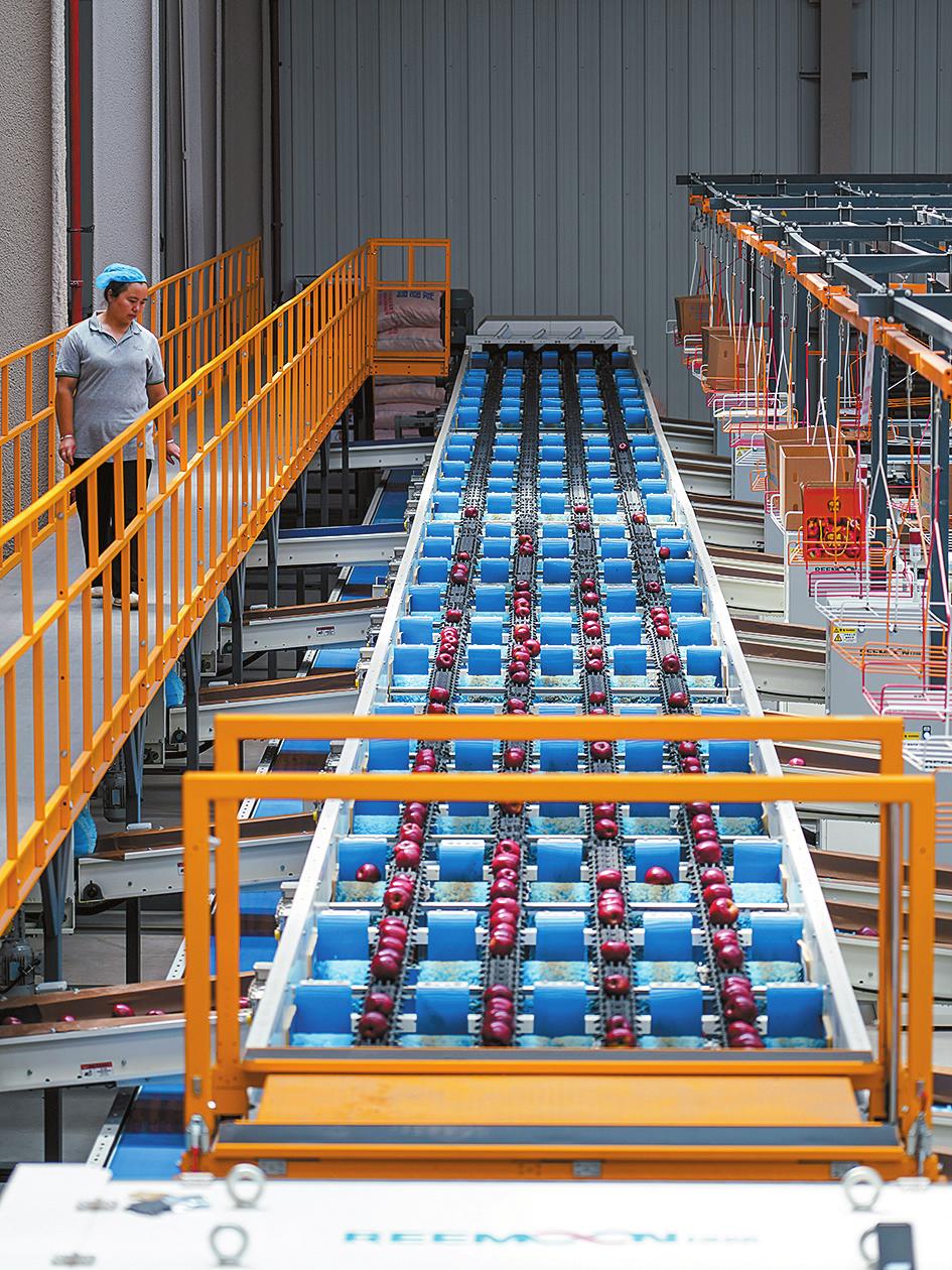 9月10日,在昭通市鲁甸县一企业内,工作人员在查看机器智能分选苹果的情况。地处乌蒙山区的云南省昭通市是我国南方优质苹果生产基地。时下正值昭通早、中熟苹果采收季,当地企业抓紧加工、包装,以供应市场。