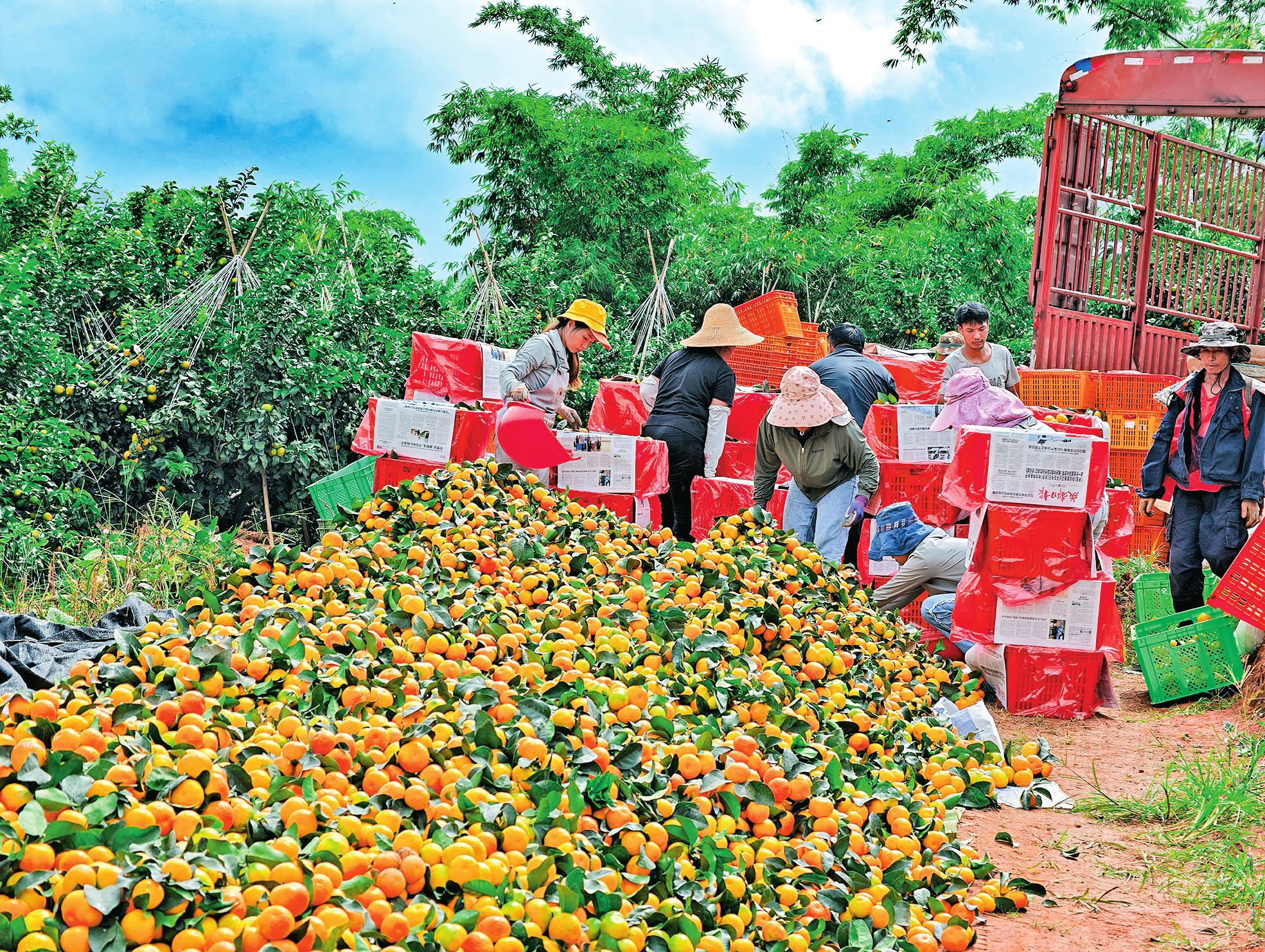 本报讯(记者 李瑞铭 文/图)金秋时节,位于红河谷-绿汁江热区产业经济带上的新平县柑橘主产区,漫山遍野的柑橘林果满枝头,金秋砂糖橘等品种陆续成熟,全县18.61万亩柑橘梯次进入采摘期。 采摘、运果、分拣、装筐、发货……9月13日,在位于老厂乡马房村三家村小组的新平红帆农业科技有限公司柑橘基地里,金秋砂糖橘喜迎丰收,果园里一片繁忙景象。 “2018年,我在这里栽了600亩金秋砂糖橘,当前均已进入盛果期。金秋砂糖橘相对比较早熟,上市时刚好赶上‘中秋档’,所以市场行情非常不错,每公斤收购价达10多元,去年产量800吨,今年预计能达1000吨。”新平红帆农业科技有限公司总经理黄泽华介绍,基地还栽了920亩沃柑,金秋砂糖橘采摘完后刚好沃柑成熟,两个品种无缝衔接,实现错峰上市。今年,自9月6日开园至今,共售卖150吨果子。 来自四川成都的水果收购商黄忠蜀一大早便来到果园收果,今年是他来此收果的第四年,他对基地的果子颇为满意:“这里的金秋砂糖橘比其他地方提前10—20天上市,甜度高、硬度好,我每年都来这里收果,主要销往四川。” 一株株柑橘树让公司蓬勃发展,也带动了周边群众增收致富。2018年,三家村小组村民王林把自家原来栽甘蔗的30亩土地流转给公司,自己则负责帮公司管护果树。“原来种甘蔗很不‘得吃’,现在我每年都有土地租金和务工收入,加起来10多万元,比以前强多啦。”王林说。 像王林一样,来自戛洒镇腰街社区的张秀芝也受益于挂满枝头的一个个“金果果”。“我们近百人的务工团队每年都来基地修剪、采果、背果,采果季每人每天有200多元的收入。”张秀芝说。据黄泽华统计,9月13日当天,基地共有180多人在此忙碌。 据了解,新平县85%的柑橘种植区域集中在红河谷沿岸的漠沙镇、戛洒镇、水塘镇、者竜乡,种植的柑橘品种以冰糖橙、沃柑为主,每年9月至次年5月,金秋砂糖橘、冰糖橙、沃柑等梯次成熟上市。截至今年上半年,全县共有柑橘经营主体316家、种植户9800多户,柑橘产业已发展成为群众增收致富的重要产业。 |