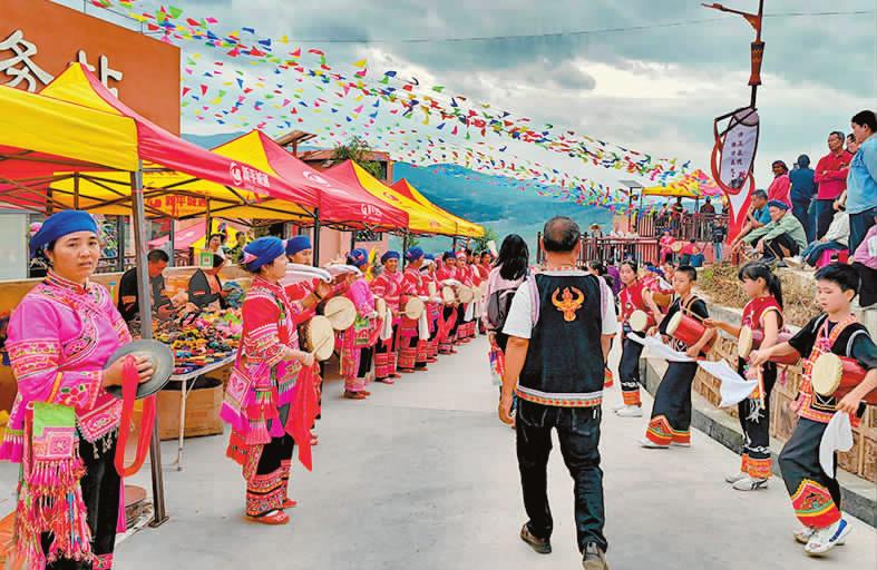 本报讯(通讯员 雷萍 白健 杨婷 合立开 文/图)9月22日,新平县平甸乡首届丰收节在磨皮村大寨小组举行,各地群众欢聚一堂,载歌载舞庆祝丰收。 上午11点,在喧天的锣鼓声中,磨皮花鼓舞队、平甸乡少儿文艺队、舞之夜文艺队的队员们身着绚丽的民族服装聚集在迎宾门下,舞花棍、打花鼓、跳四弦,用热烈的仪式欢迎各地游客的到来。 “我是第一次来到磨皮,这里节庆氛围特别好,挺热闹。”游客杨晨曦说。 下午2点,非遗传承人在现场向大家展示了平甸乡的非遗项目:彝族花鼓制作工艺、吾查们查(彝文古籍)、彝花棍狮子舞(道具狮子)。一个个传说、一件件保存完好的老物件,带着岁月的痕迹,穿越时空的维度,让游客领略到了磨皮村彝族同胞的历史文化魅力。 非遗展示结束后,一场别开生面的乡村村晚文艺演出激情上演。新平县各族儿女齐聚一堂,载歌载舞,充分展现了“中华民族一家亲”的和谐氛围。除此之外,平甸乡还准备了趣味小游戏、农产品乐购、丰收盛宴等丰富多彩的活动,让游客全方位、多角度感受丰收的喜悦。 |