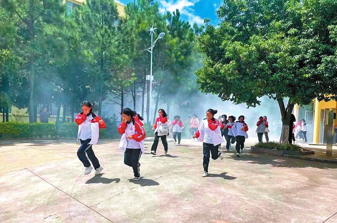近日,玉溪师院附中开展秋季学期第一次安全疏散演练。学校保卫处在学生宿舍出口投放了消防应急演练烟雾弹,学生们用毛巾、衣服捂住口鼻,弯下身子,迅速有序地离开宿舍到达指定疏散点。演练结束后,学校相关负责人详细讲解了科学避震和逃生方法。活动增强了师生安全意识,提升了学校应对紧急突发事件的能力,进一步筑牢校园安全防线。 通讯员 李清 摄