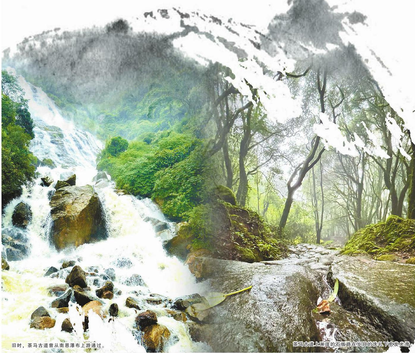 悠远古道的气息 哀牢山中的茶马古道是古代滇南的“茶盐之路”(普洱茶、磨黑盐都由此道出境),又是“南方丝绸之路”的重要路段。它始于思茅(今普洱),翻越崇山峻岭,穿过茫茫原始森林,涉江过河,止于昆明,是当时滇西南与内地联系的重要商道之一。当年,马帮在这条线上来往穿梭,运出铜、铁、粮食、药材、茶叶等商品,从外地运进洋纱、布匹等生活用品。新平境内的茶马古道全长100多公里,它穿越哀牢山腹地,一路植被茂密,崎岖难行。据说,在其兴盛时期,每天都有800多匹骡马、1000多名商人从这里通过。 来到新平县戛洒镇耀南村,步入哀牢山十里河景区的茶马古道,仿佛穿越时空,回到了那个马蹄声声、商旅不绝的年代。古道两旁,茂密的树林郁郁葱葱,散发着淡淡的清香。耳旁虫鸣鸟叫,交织着山间清泉的潺潺流水声,伴着被雨水打湿的翠绿植被和浓浓的雾气,显得悠远而神秘。脚下,淋湿的石板路在岁月的洗礼下愈发光滑,历史的痕迹斑驳可见。 深入古道,古树枝叶繁茂,树干粗壮,岁月在扭曲的树枝上留下痕迹。苔藓覆盖的山石记录着古道的漫长岁月。雨后阳光透过树梢,照在苔藓上,映出翠绿光斑。每一步都让人感受到历史的深度和哀牢山的神秘。 当地人杨超雁对茶马古道了解颇深,他说:“新平哀牢山最主要的茶马古道就是从金山丫口到十里河的这条,是穿越哀牢山的著名古道,它从普洱市镇沅县和平镇到玉溪市新平县的石门峡。在古代,南来北往的商客、马帮都要从这里通过。以前,我们这里有个‘马锅头’曾跟我讲过,旧时他们赶马时一个人要管理5匹马,25匹为一‘把’,相当于一个‘帮’,一天要走三四十公里。有时,遇上二三百匹马陆续行进在这条蜿蜒曲折的古道上,马铃声、马蹄声和赶马人的叫喊声交织在一起,响彻山谷。” 据了解,这条古道虽是新平哀牢山最主要的茶马古道,但它在进入新平后,又被分为3条。第一条由哀牢山东面到石门峡后,前往腰街、漠沙,经大象渡口、磨盘山、扬武、石屏、建水、砚山、富宁后出云南,到达广西百色、防城港和北海等地,是通往大海的古道。第二条是从金山丫口经东关岭到戛洒,渡戛洒江后经新化、富良棚、坡脚、峨山县城、玉溪、晋宁,到达昆明,再前往曲靖、昭通。在到达昭通水富后,马帮所运货物会卖给走水运的商贩,商贩沿长江将货物运往重庆、南京、上海等地,这条古道在旧时曾运过“大烟”。第三条是从耀南经新寨、水塘、双柏、楚雄、大理、丽江等地,到达西藏。