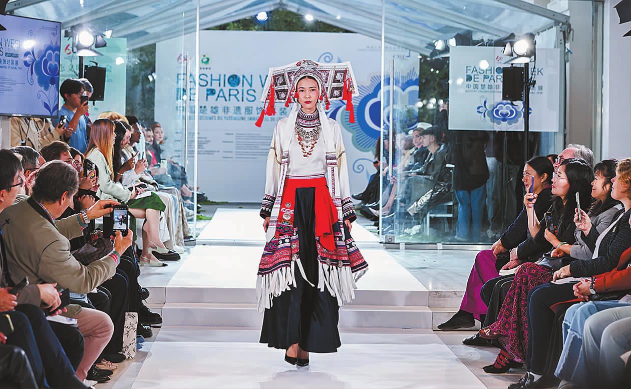 9月26日,模特在法国巴黎举行的中国楚雄非遗服饰时装展上展示时装。 传统韵味邂逅时尚风潮,民族瑰宝闪耀国际舞台。近日,来自中国云南的楚雄彝族服饰非遗时装展在法国巴黎举行,这项有着1700多年历史的国家级非遗再次亮相国际主流的时装舞台。 当天共有35套楚雄非遗时装由中外模特穿着展示。这些服饰以现代设计理念与剪裁方式,突显楚雄彝族服饰传统的非遗特色,牢牢锁住围绕T台百余名受邀观众的目光。 今年是中法建交60周年,同时也是中法文化旅游年。2024巴黎时装周·中国楚雄非遗服饰时装展是庆祝中法建交60周年系列活动之一。此次参展的彝族服饰作品由非遗传承人、艺术院校服装设计师等共同设计制作,将传统文化与当代审美、民族特色与国际潮流巧妙融合。 楚雄彝族服饰有着1700多年的历史,是彝族人民引以为傲的“指尖艺术”“心灵花朵”。在长期的生产、生活中,彝族形成了丰富多彩的服饰文化,以图案丰富、色彩浓烈、设计精美闻名。彝族服饰于2014年被国务院批准列入第四批国家级非物质文化遗产名录。 一代代的彝家女子把落枝的喜鹊、绽放的山花、飞舞的蝴蝶,以及真挚浓烈的情感、对美好生活的憧憬,绣在布上,缝在衣上。如今,彝绣已经以其独特的魅力走向世界舞台,从上海到纽约,从米兰到巴黎,彝绣成为了中国民族文化的一张璀璨名片。 (新华社10月27日发) |