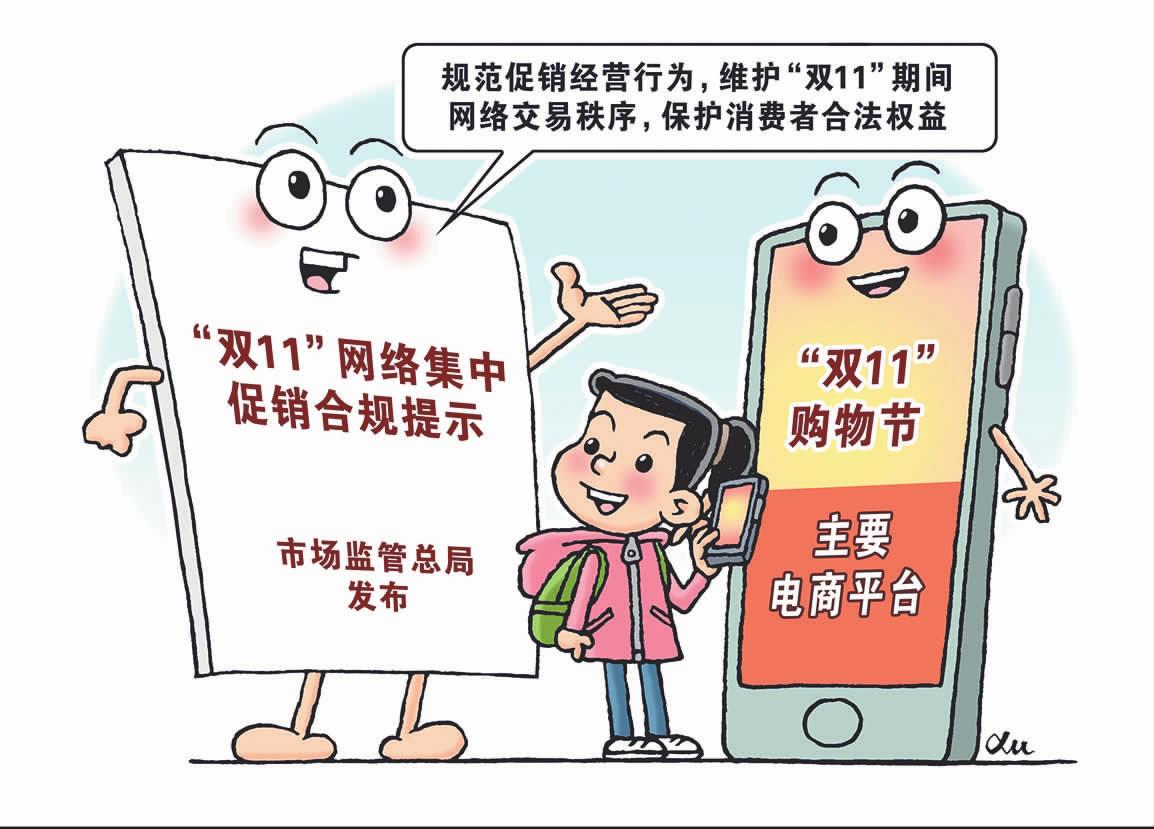 市场监管总局近日向主要电商平台发布 《“双11”网络集中促销合规提示》,规范促销经营行为,维护 “双11”期间网络交易秩序,保护消费者合法权益。