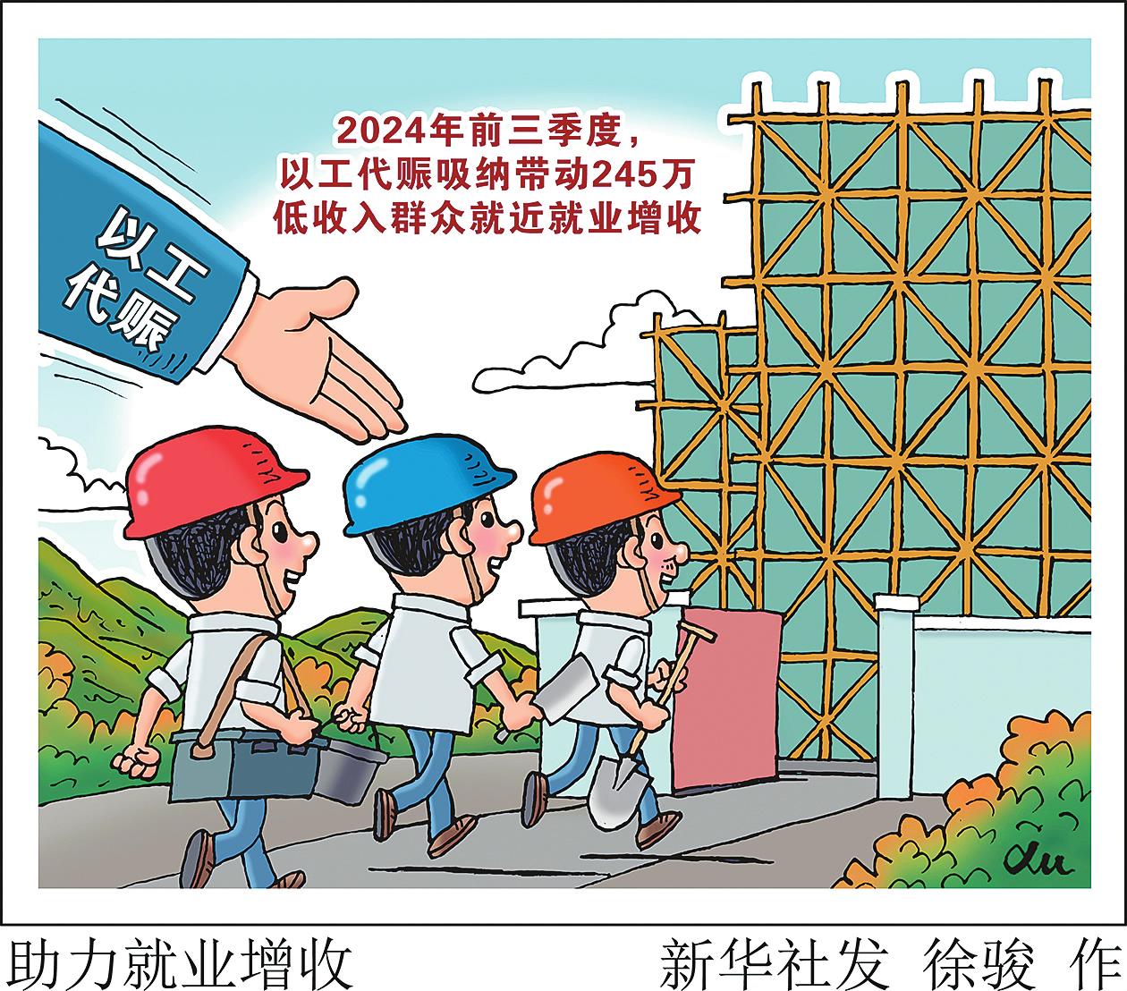 国家发展改革委会同有关部门通过安排以工代赈中央专项投资项目,同步推动地方在重点工程和农业农村基础设施项目中大力实施以工代赈,今年前三季度已累计吸纳245万低收入群众务工就业,同比增长30.2%,已发放劳务报酬310亿元,同比增长22.7%。 徐骏/作(新华社11月4日发)