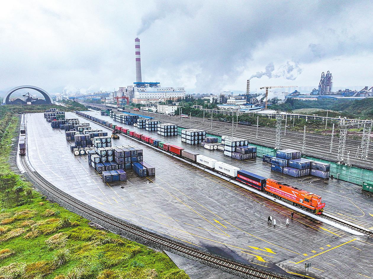 11月19日,重庆市动力锂电池全国铁路试运首发班列在重庆长寿渝巴专用铁路等待发车(无人机照片)。当日,三列运载动力锂电池的列车分别从重庆长寿渝巴专用铁路、四川宜宾港、贵阳国际陆港缓缓开出,这是我国铁路首次大规模试运输动力锂电池,将助力国产动力锂电池产品的全球流通。