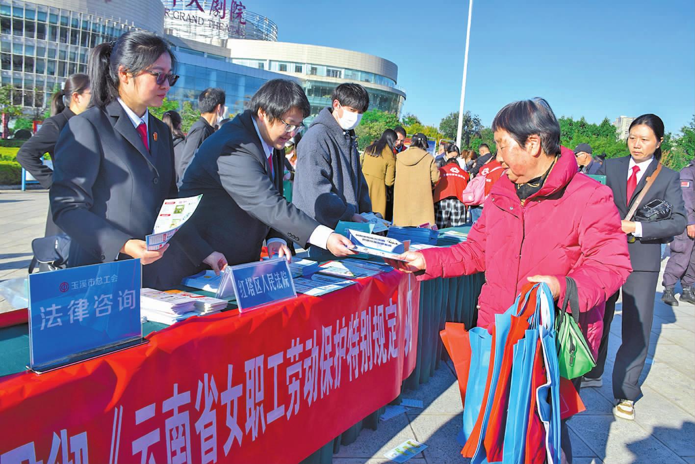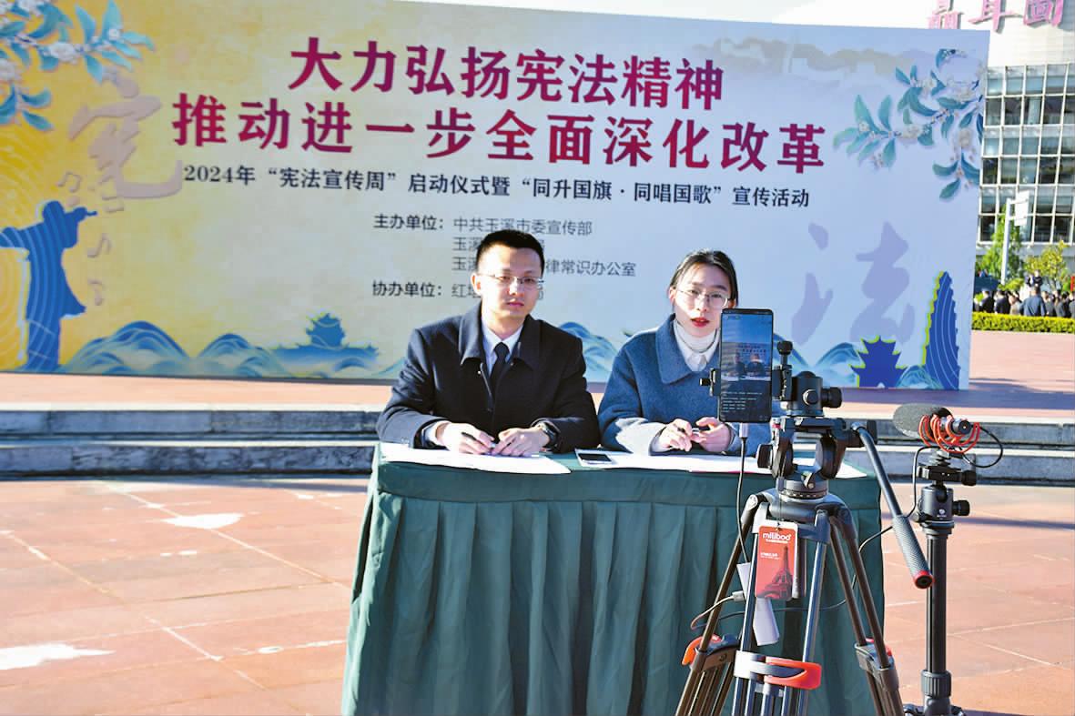本报讯(记者 黄思敏 文/图)今年12月4日是第十一个国家宪法日,12月1日至7日是第七个“宪法宣传周”。12月4日上午,我市组织开展2024年“宪法宣传周”启动仪式暨“同升国旗·同唱国歌”宣传活动。 此次活动由中共玉溪市委宣传部、玉溪市司法局、玉溪市普及法律常识办公室主办,红塔区司法局协办,以“大力弘扬宪法精神,推动进一步全面深化改革”为主题,目的在于弘扬宪法精神、社会主义法治精神,坚定维护宪法权威和尊严,推动宪法实施成为全体人民的自觉行动。 上午9时,玉溪消防聂耳广场国旗护卫队迈着铿锵有力的步伐,护卫着五星红旗走向升旗台,伴随着高亢激昂的《义勇军进行曲》,鲜艳的五星红旗冉冉升起。玉溪市守法普法协调小组成员单位、市区两级普法骨干及玉溪农业职业技术学院、玉溪职业技术学院师生等600余人集体面向国旗行注目礼,齐声高唱国歌。 升旗仪式结束后,市区两级64家普法责任单位认真落实“谁执法谁普法”责任制,充分发挥各自职能优势,通过发放宣传材料、摆放展板、悬挂横幅、提供法律咨询等形式,向广大市民集中宣传宪法、民法典等相关法律法规。在市政府、市信访局宣传摊位前,工作人员向广大市民宣传玉溪“民意速办”微信小程序,引导市民通过小程序合理反映民生诉求,将矛盾纠纷化解在源头。 今年我市还创新普法形式,以抖音直播的形式开展惠民普法服务。直播现场,律师讲解宪法知识,并聚焦民事法律、婚姻家庭、电信诈骗等重点领域,回应群众关切。 此次宣传活动现场气氛热烈,共计发放宣传材料2万余份,提供法律咨询200余人次、受教育群众4000余人次。据悉,“宪法宣传周”期间,全市各地各部门还将因地制宜开展一系列各具特色的宪法宣传活动,推动宪法精神融入群众日常生活,使尊法、学法、守法、用法在全社会蔚然成风。 |