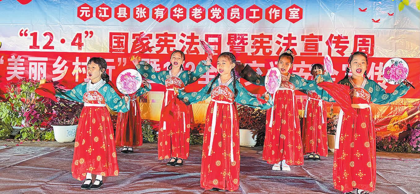 本报讯(特约记者 杨红艳 通讯员 张有华 文/图)连日来,元江县将文化活动与法治宣传相结合,开展元江县2024年法治文化基层行暨“12·4”国家宪法日文艺演出宣传活动,让法治文化“接地气”润人心。 “小萌娃,笑哈哈,上台来把快板打。要问今天说哪样,今天专门说宪法……”12月1日,在元江县曼来镇曼来社区通达小组,“老少同携手 理论快板说”社科普及志愿服务队的“小小宣讲员”表演少儿音乐快板《萌娃说宪法》,赢得广大群众的阵阵掌声。在文艺演出中,花灯说唱《弘扬宪法精神 精神法治元江》及少儿音乐快板《萌娃说宪法》《中华好家风》等展现了法律在日常生活中的重要作用,“小小宣讲员”的精彩演绎让观众深刻理解了遵纪守法的意义。 11月30日,在红河街道桥头社区曼费小组,“老少同携手 理论快板说”社科普及志愿服务队与红河街道文艺骨干将宪法、厚养薄葬、移风易俗等知识通过音乐快板说唱的形式开展宣讲,让群众在轻松愉快的氛围中对宪法知识、移风易俗等有了更直观、更深刻的了解。前来参加活动的群众纷纷表示,这种法治宣传方式很好,不仅观看了精彩的演出,还能学习到法律知识,希望多举办这样的活动。 据悉,本次活动由元江县委宣传部、元江县委文明办、县社科联组织策划,旨在创新法治宣传形式,让群众在欣赏节目的过程中,潜移默化地接受法治教育,增强法治意识,努力营造全社会尊法、学法、守法、用法的良好氛围。 |