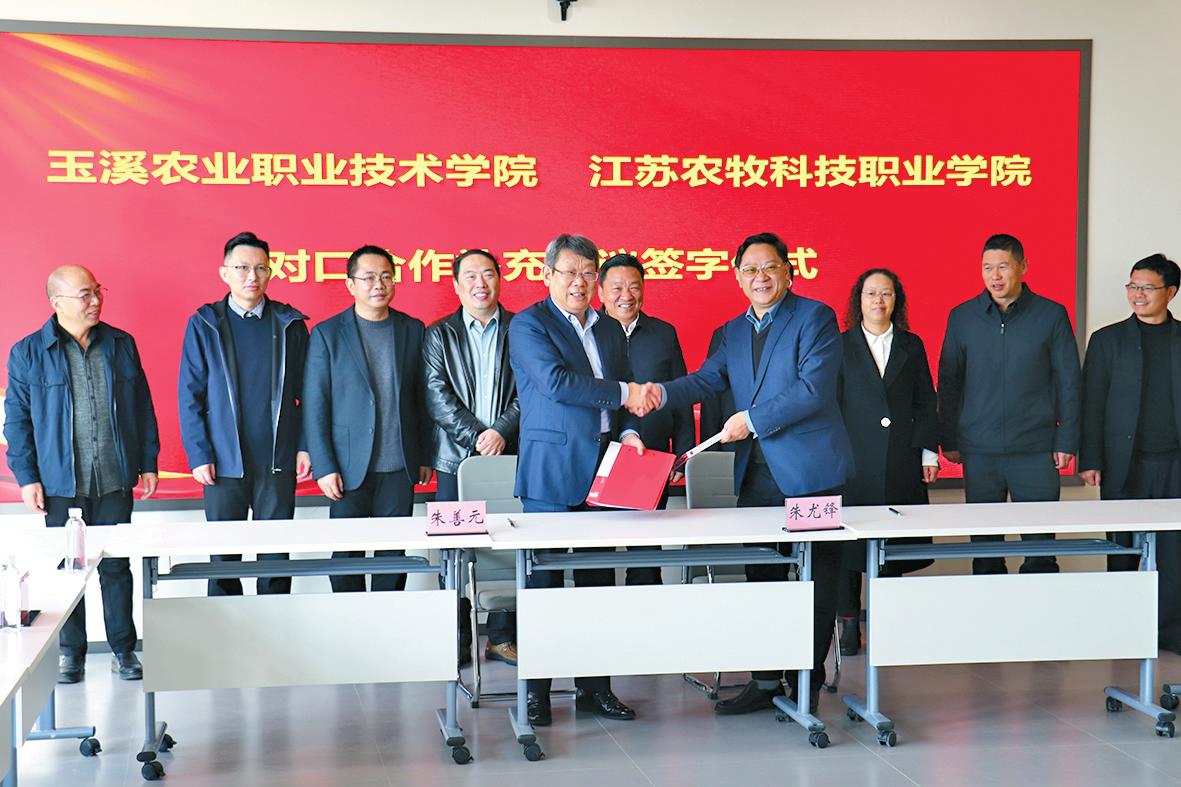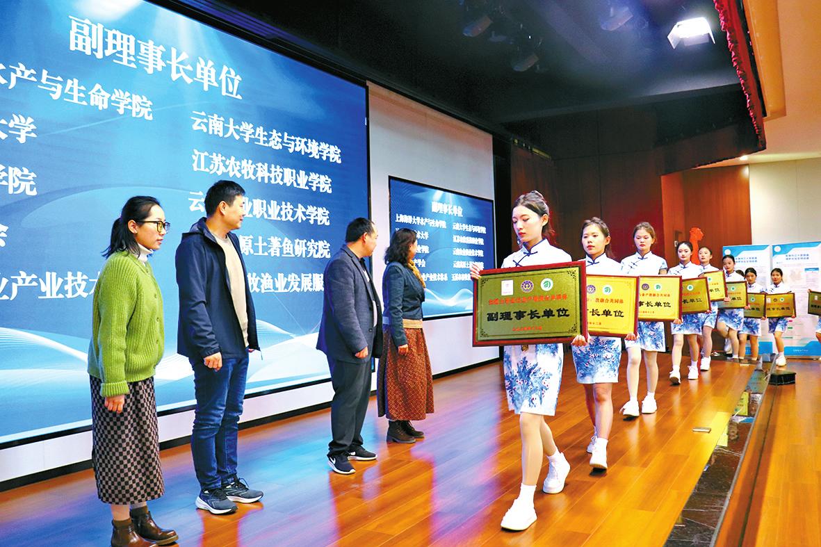 共谋渔业持续发展路径 12月13日,全国土著鱼行业产教融合共同体、玉溪市现代渔业市域产教联合体、水产产业学院、云南高原土著鱼研究院玉溪分院成立大会暨云南省水产学会2024年学术年会在玉溪农职学院举行。 为保护和开发利用好全国丰富的土著鱼类资源,推动全国渔业可持续发展,玉溪农职学院与众多行业同仁携手合作,成立全国土著鱼行业产教融合共同体、玉溪市现代渔业市域产教联合体、水产产业学院、云南高原土著鱼研究院玉溪分院,这是一个集科研、教育、产业于一体的综合性平台,旨在聚焦高技能人才培养和关键核心技术攻关,通过资源共享、优势互补,推动土著鱼保护与现代渔业产业协同发展,让职业教育全面服务和支撑产业高质量发展。 大会宣读了全国土著鱼行业产教融合共同体成员名单、玉溪市现代渔业市域产教联合体成员名单,举行了水产产业学院成立揭牌仪式、云南高原土著鱼研究院玉溪分院成立授牌仪式,以及理事长单位、副理事长单位、常务理事单位授牌仪式。 云南省水产学会2024年学术年会上,理事长邱家荣作年度工作报告,云南大学教授罗静、中国科学院昆明动物研究所研究员陈小勇、云南省水产技术推广站正高级农艺师石永伦、云南农业大学副教授武祥伟、滇西应用技术大学教授胡文娴、云南大学研究员王海军分别作了题为《天然异源多倍化物种和人工远缘杂交体系的复杂基因组学研究》《缅甸鱼类多样性研究进展》《云南设施渔业发展实践与展望》《元江鲤的种质创新利用研究》《鱼类适应性进化研究》《长江流域与云贵高原鱼类群落退化机制与保护对策》的学术报告,与会专家从产教融合高质量发展的角度分析问题、给出指导性意见和建议,为土著鱼行业职业教育发展提供了创新路径。 共话现代职教体系建设 12月19日,玉溪市高原特色现代农业市域产教联合体、云南花卉行业产教融合共同体、云南食用菌行业产教融合共同体成立大会暨玉溪市产教融合实践创新交流会在玉溪农职学院举行,多方专家学者齐聚一堂,共话现代职业教育体系建设,共谋产教融合发展,共促校企交流合作,共享职教发展成果。 大会举行了玉溪市高原特色现代农业市域产教联合体、云南花卉行业产教融合共同体、云南食用菌行业产教融合共同体揭牌仪式,以及玉溪数字花卉产业学院、重组烟草技术产业学院、云南绿色科技产业学院、卷烟新材料产业学院、油脂加工与绿色食品产业学院、大龙潭乡现代烟草产业学院、峨山太格果业产业学院、云南高原特色生态农业产业学院、产教融合实践中心、玉溪市专家基层科研工作站授牌仪式。 大会邀请云南省农业科学院花卉研究所所长李绅崇、上海市农业科学院设施园艺研究所研究员张辉、中国农业大学园艺学院研究生曹晨、云南省花卉技术培训推广中心无土栽培技术负责人李俊瑜分别作《向“新”而行 以“质”致远——云南花卉产业发展与创新》《番茄产业发展现状与挑战》《云南晋宁云天化花卉科技小院》《切花玫瑰绿色生产种植技术集成示范》主题报告,为与会嘉宾带来了精彩的学术盛宴。 大会分会场,云南花卉行业产教融合共同体学术报告会、云南食用菌行业产教融合共同体学术报告会、烟草行业学术报告会、畜牧行业产教融合企业订单班人才培养质量提升论坛同步举行,行业学者聚焦教育与产业深度融合的新路径,探索创新资源共享与合作的新方法。禾韵园艺核心创始人飞雪梅作主题报告,点燃青年学子创业梦想;插花花艺师王玉平和玉溪农职学院师生现场为大家带来插花表演,让大家领略花卉艺术之美。 大会期间,玉溪昱达现代农业有限公司、玉溪紫玉花卉产业有限公司、通海锦海农业科技发展有限公司等企业,在玉溪农职学院教学楼展示区进行企业文化宣传和就业宣传,展示了校企共育共研作品及成果,吸引了众多参会者和学生纷纷前往观看。 从“双高”迈向“新双高” 玉溪农职学院牢固树立“发展为要、项目为王、实干为先”的鲜明导向,持之以恒抓落实、一以贯之抓作风、凝心聚力抓发展,从“双高”向“新双高”升级转变,以“双高”建设进一步完善和优化发展思路,推动学校高质量发展。 12月13日,玉溪农职学院与江苏农牧科技职业学院举行“新双高”建设思路与实践专题研讨会,就“新双高”建设背景下,高职院校教育模式该如何更好地改革与创新进行探讨。 研讨会上,江苏农牧科技职业学院校长、二级教授朱善元以《“新双高”背景下高职教育改革方向和重点任务》为题作“新双高”建设思路与实践专题报告。结合习近平总书记关于职业教育的重要论述和国家关于职业教育改革的相关文件要求,朱善元详细阐释了“新双高”建设的时代背景和核心要义,根据“新双高”建设的重难点和主要变化,向与会人员分享了江苏农牧科技职业学院未来的改革方向和重点任务,从理论高度和实践深度两方面为学院推进“新双高”建设提供了思路和依据,对推进“新双高”建设和学院高质量发展具有重要指导意义。 之后,双方围绕学校高质量发展开展座谈交流,共同探索促进“新双高”建设高质量发展之道。会议还举行了对口合作补充协议签字仪式,为学院聘任的名誉教授、客座教授颁发聘书。玉溪农职学院党委书记柏家渭表示,“新双高”计划反