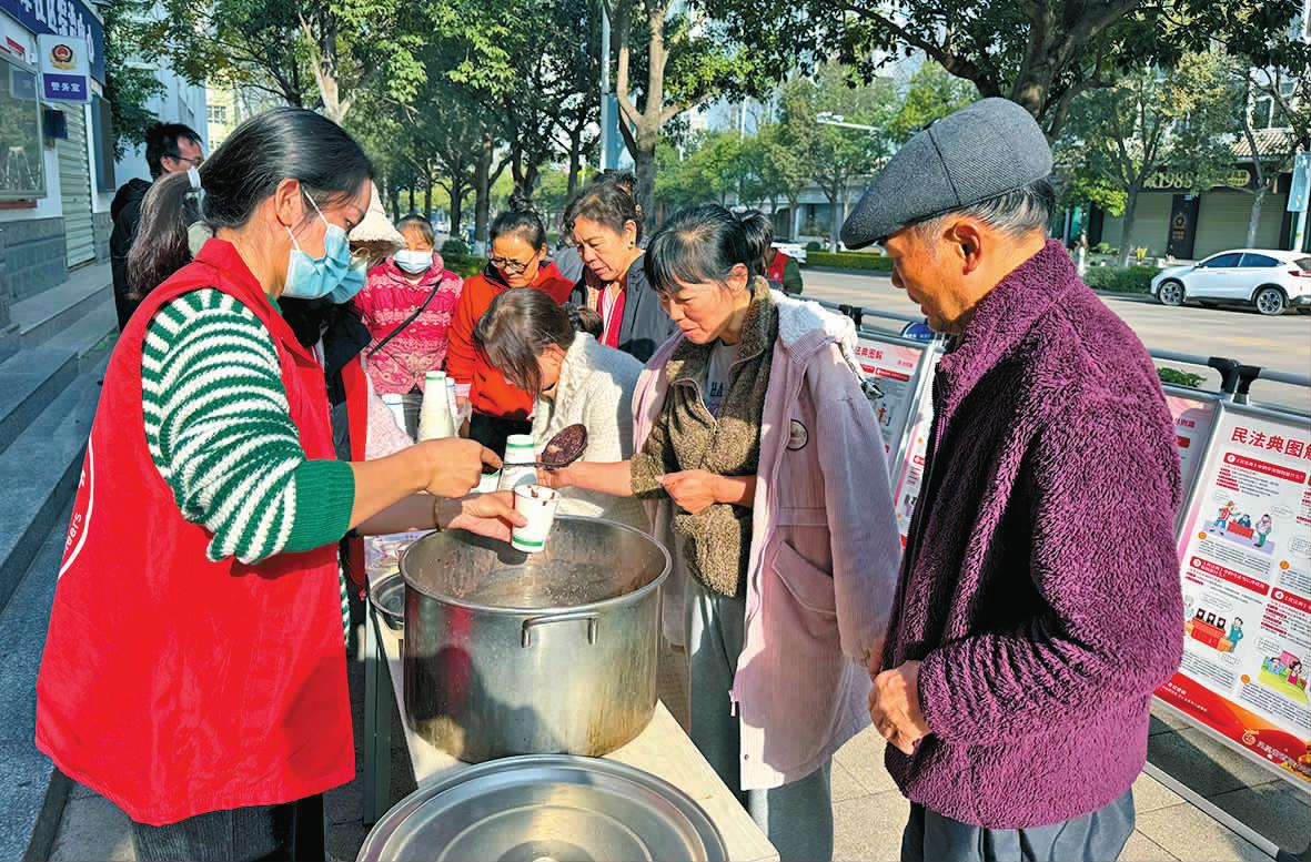 腊八节是春节的序幕,红塔区凤凰街道高龙潭社区1月7日组织开展了2025年送腊八粥活动。