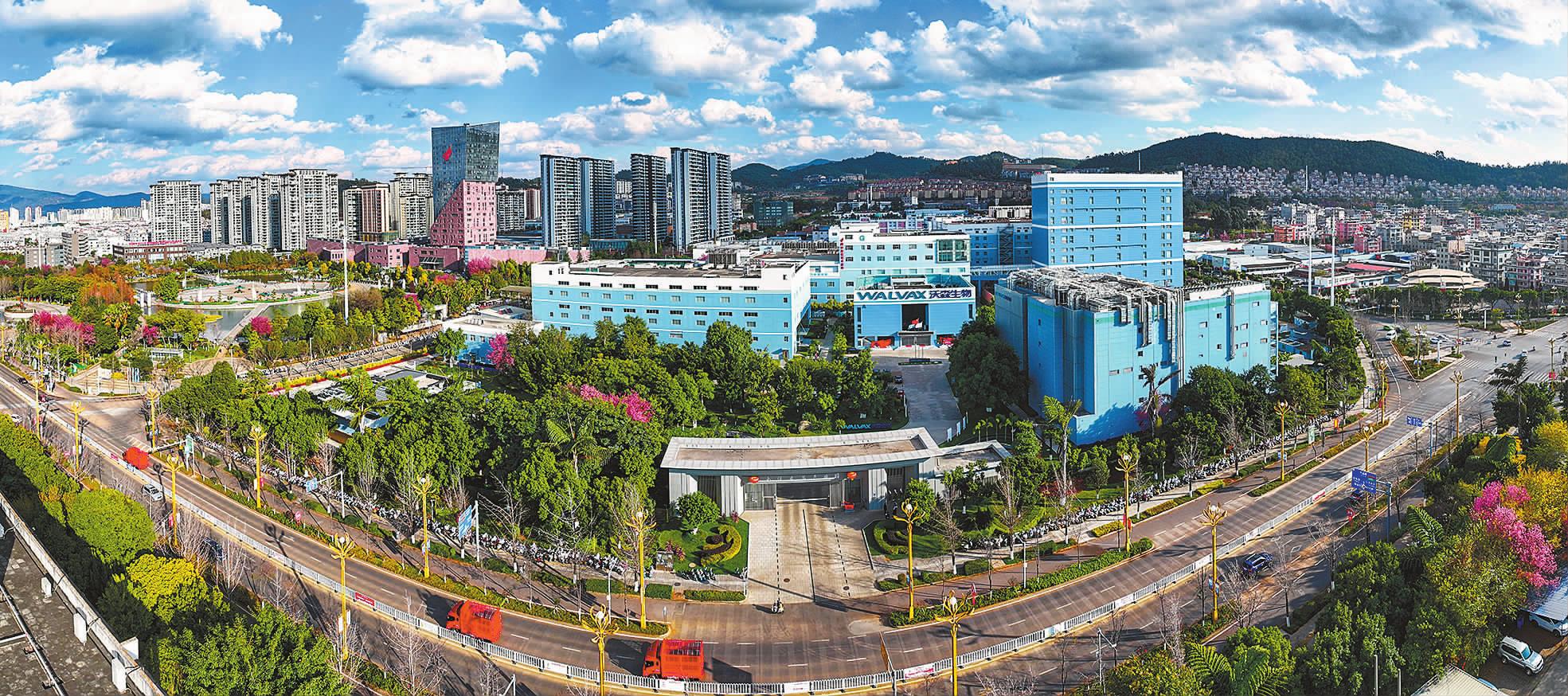 近年来,玉溪市围绕 “打造生物医药高地”新定位、新要求,全力构建 “龙头带动、配套跟进、全产业链发展”的集群式发展格局,着力推动全市生物医药全产业链发展,努力打造玉溪经济重要增长极。全市现有生物医药及医疗器械企业70户,其中制造业31户。2024年1至11月,玉溪生物医药全产业链实现产值115.31亿元。图为1月8日航拍的玉溪疫苗产业园。 本报记者 曾永洪 摄