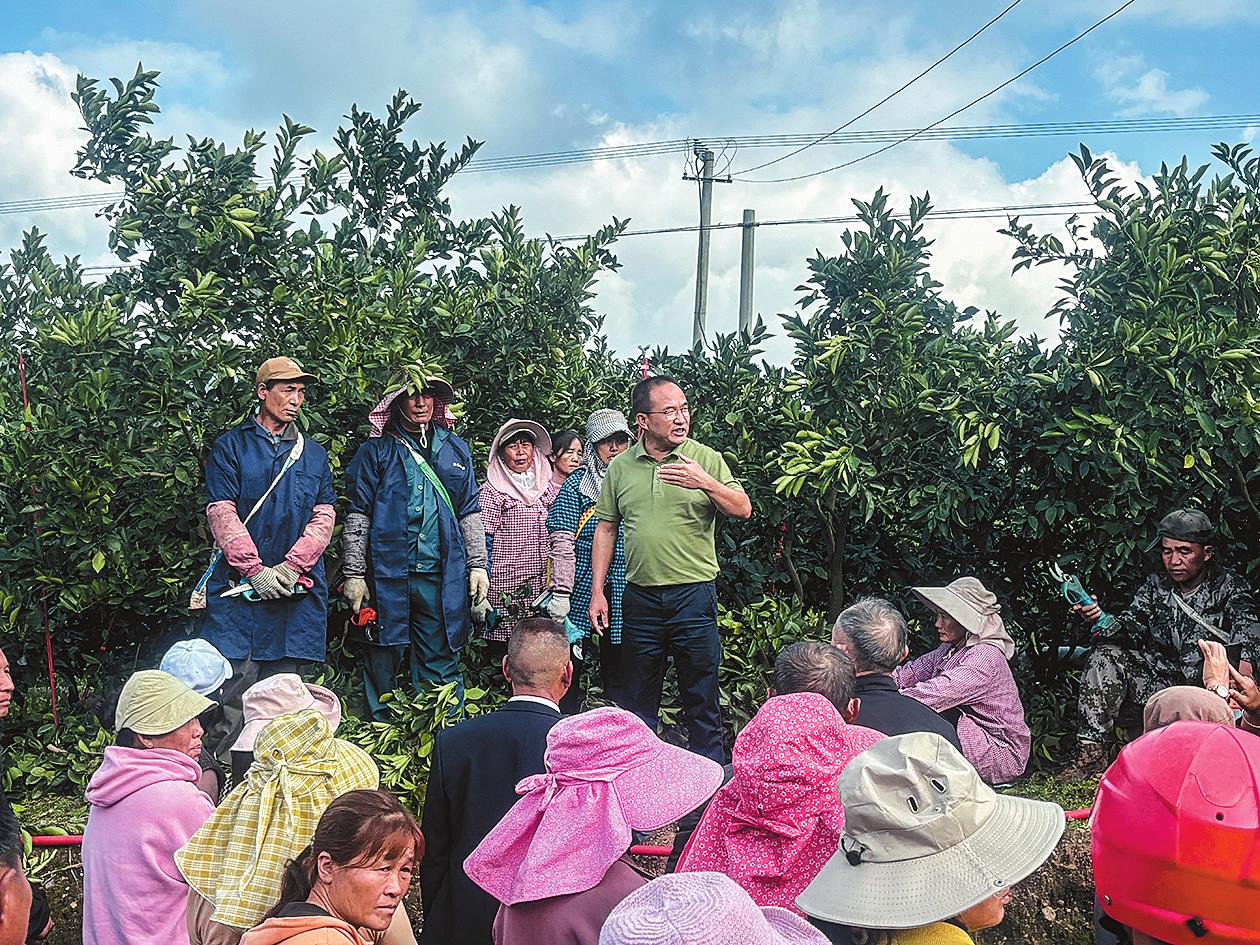 2008年,白兴阳开始种植柑橘,由于不懂技术、不懂管理,亩产量一直徘徊在1吨左右。2014年,康志文的华宁康氏农业开发有限公司在漠沙镇峨德村建成1200亩种植基地,因为无法与周边橘农开展统防统治,病虫害防控成为企业发展的隐患。橘农增收之困、企业发展之忧,成为新平县实现柑橘产业高质量发展的瓶颈。 有着300余年柑橘种植历史的新平县,自2002年开始规模化发展柑橘产业,截至2024年10月,全县柑橘种植面积19.18万亩,挂果面积17.65万亩,预计产量超40万吨,产值近17亿元。全县柑橘种植覆盖全部12个乡镇(街道)、106个村(社区)、704个村(居)民小组,涉及农户近11万户,培育柑橘产业新型经营主体316户,建成26家加工企业。培育出“褚橙”“龙橙”“潘橙”“高原王子”等一批具有市场影响力的知名品牌,产品主销国内一线城市,出口加拿大和东南亚国家。经过20多年的发展,柑橘产业成为新平县首屈一指的农业特色产业。 然而,前行至今的新平县柑橘产业,在建设现代农业产业基地,推动传统农业向现代农业转变中,同样面临着提档升级和提质增效的大考。 一方面,占全县柑橘种植面积61.2%的新型经营主体通过实施规模化、标准化、设施化、专业化和品牌化经营,亩均单产达到3吨以上,商品果率超过75%;另一方面,占全县柑橘种植面积38.8%的种植户,由于小规模种植、经验性管理、缺乏品牌支撑,亩均单产仅1.5吨,商品果率仅55%。 一方面,经营主体不断增加水肥一体化、病虫害防控乃至数字农业等基础设施投入,着力提升病虫害防控能力;另一方面,由于缺乏有效的组织管理机制,难以和周边种植户开展统防统治,导致植保防控难度不断加大,发展隐患增大。 一方面,经营主体通过不断加大品牌建设力度,积极拓展市场,但受制于发展空间限制和投资成本压力,扩大基地种植规模难度增大,导致优质果品不够卖;另一方面,众多种植户因果子品质参差不齐,导致卖不上价,影响了产业整体发展效益。 如何在有限的发展空间内高效提升柑橘产业发展质效,实现产业安全和可持续发展,真正把柑橘变成支撑乡村振兴和农民增收致富的“摇钱树”,是新平县推动柑橘产业高质量发展的关键。 随着全市抓经济促发展工作的深入推进,新平县在盘清“五本账”、推进“四抓”工作、建设现代农业产业基地进程中,立足发现问题导向,梳理产业发展短板,明确破解橘农增收之困、企业发展之忧的路径就是全面提升组织化、规模化、标准化、设施化、专业化和品牌化水平,这是推动全县柑橘产业从传统农业向现代农业突破发展的关键所在。