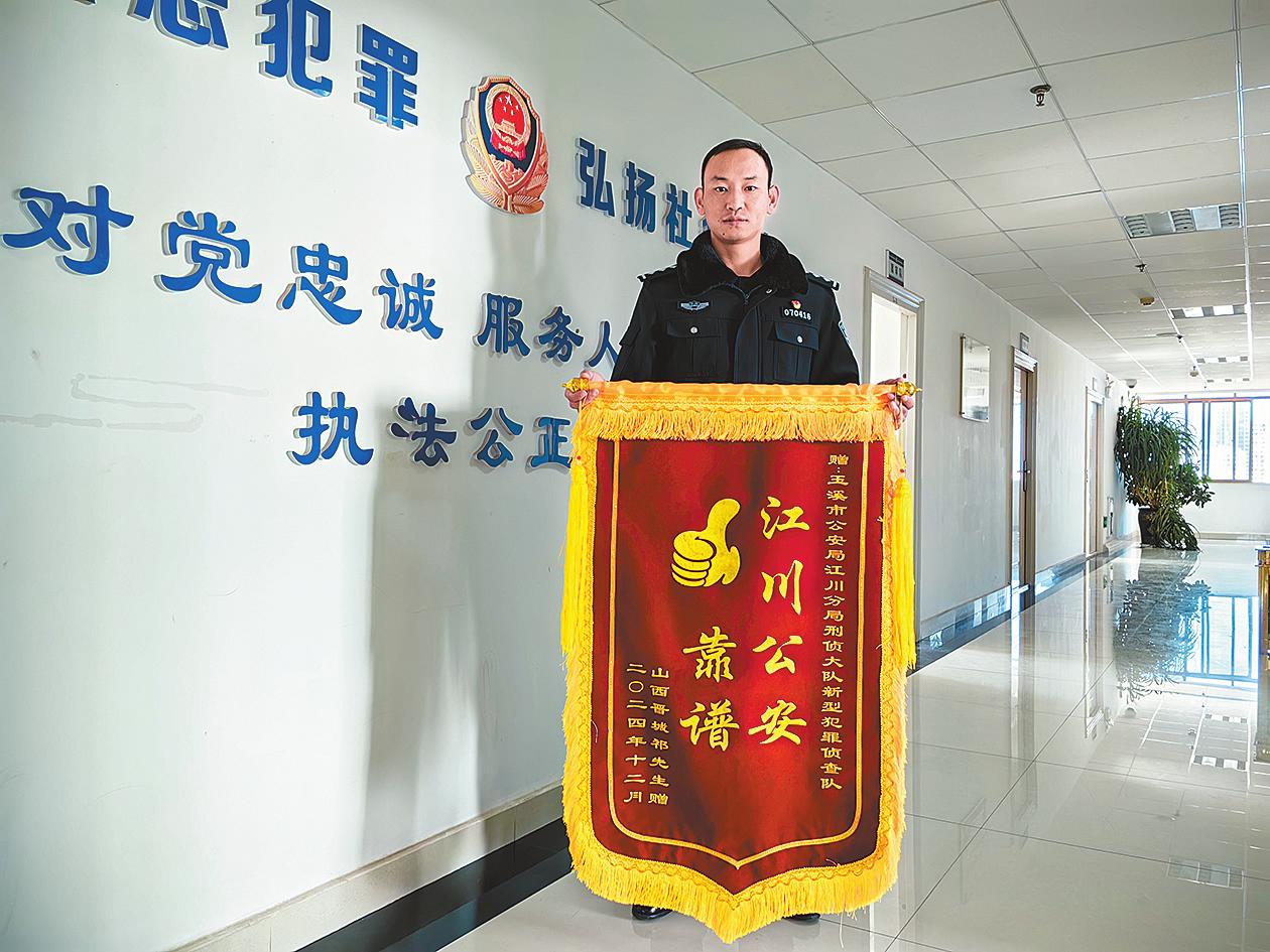 本报讯(通讯员 周发兴 文/图)新年第一天,玉溪市公安局江川分局侦查打击部民警段吕收到一面从山西省阳城县邮寄来的锦旗,锦旗上有6个字——“江川公安靠谱”和一个大大的点赞拇指。 2024年12月中旬,玉溪市公安局江川分局侦查打击部接到线索推送后,通过深挖扩线,成功打掉一个涉“两卡”帮信犯罪团伙,先后抓获涉案人员7名。犯罪嫌疑人在利益驱使下,用自己的银行卡帮诈骗分子转移赃款29万余元,受害人涉及江苏、四川、山西等多个省份。 为了打击和震慑电信网络诈骗犯罪,民警将追赃挽损与案件办理同步推进,通过对嫌疑人进行普法宣传和思想工作,共为受害人挽回损失14万余元,其中包括山西省阳城县祁某的10万元被骗款。案件破获后,民警第一时间将追回的钱款发还受害人。 受害人祁某收到民警帮他追回的10万元钱款后,对江川警方及办案民警十分感激,特意定制了一面锦旗从山西省阳城县邮寄给办案民警。这面锦旗1月1日送到办案民警段吕手中,成为江川警方2025年收到的第一面锦旗。 |