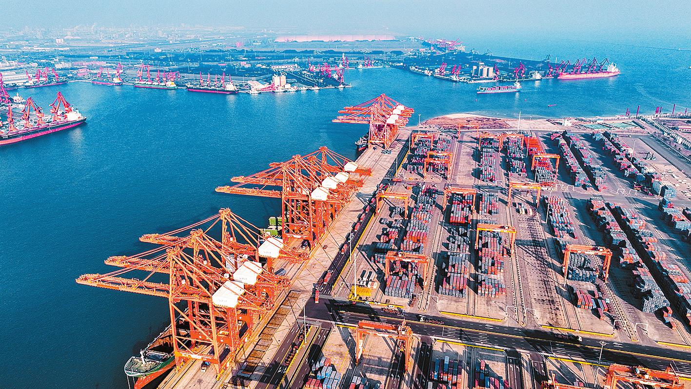1月13日拍摄的河北省唐山港京唐港区集装箱码头(无人机照片)。1月13日,海关总署发布数据显示,2024年我国货物贸易进出口总值43.85万亿元,同比增长5%。中国外贸经受住多重挑战,规模再创历史新高。