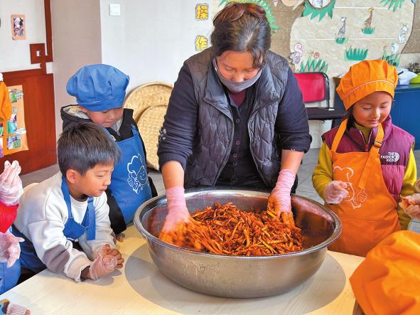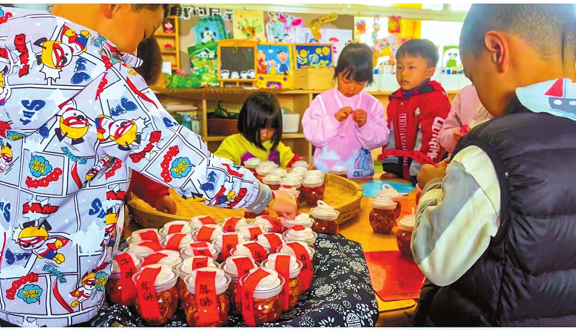 年味是冬日里家家户户张灯结彩的喜庆氛围,是寒冷空气中弥漫的爆竹声,是竹竿上晾晒得油润金黄的腊肠散发出的诱人香气,是清晨白米粥旁咸香脆口的萝卜干传递的香辣与回味,也是集市上琳琅满目、热闹非凡的货物带来的热闹与喧嚣。对玉溪市第一幼儿园的孩子们来说,年味更是一段从播种到收获,再到腌制萝卜干的充实旅程。在老师的带领下,孩子们制作自己播种、自己收获的萝卜,体验劳动的艰辛与快乐,用一双双稚嫩的小手,编织属于自己的年味记忆。