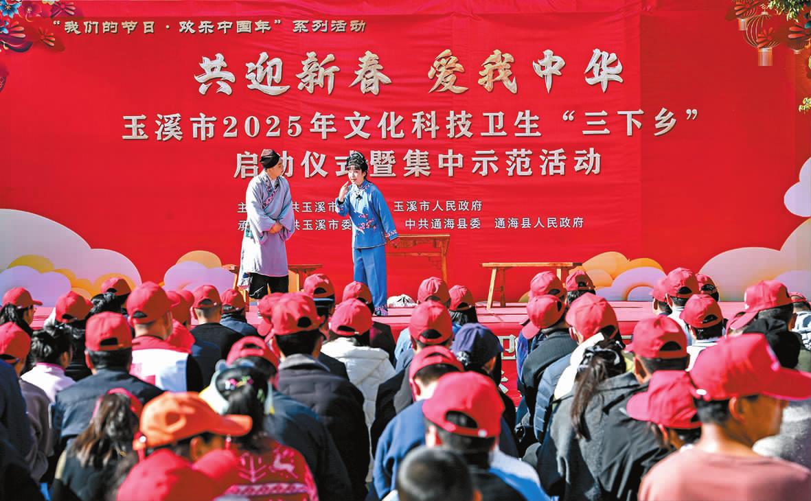 本报讯(记者 李丹/文 李冉/图)1月23日,玉溪市2025年“共迎新春·爱我中华”文化科技卫生“三下乡”启动仪式暨集中示范活动在通海县纳古镇开展。当天,各县(市、区)也同步组织开展2025年“共迎新春·爱我中华”文化科技卫生“三下乡”活动。 写春联、送福字、测血压,现场教授应急救护常识;精彩的文艺表演、有趣的知识抢答、沉浸式的非遗体验……丰富多彩的活动引得过往群众驻足观看,纷纷参与其中。在纳古镇,来自宣传、文化和旅游、科技、卫生健康、教育体育、农业农村、司法等32家市直单位的专家和志愿者为群众带来了惠民文艺演出、科普宣传、健康义诊、法律咨询等服务,着力把好听好看的文化盛宴、管用实用的科学技术、便民惠民的医疗服务送到基层。 据悉,春节期间,全市9个县(市、区)将开展“我们的中国梦——文化进万家”、“我们的节日·春节”、春节文艺汇演、民俗文化表演、民族团结进步主题宣传等系列活动314场次,其中文化类231场次、体育类42场次、旅游类22场次、科技类8场次、关爱行动类11场次。通过活动开展,传播文化科技卫生知识,打通基层文化科技卫生服务的“最后一公里”,满足基层群众精神文化需求,让基层群众真正获得看得见、摸得着的利民实惠。 副市长陈静在启动仪式上致辞,并宣布2025年“共迎新春·爱我中华”文化科技卫生“三下乡”活动启动。 |