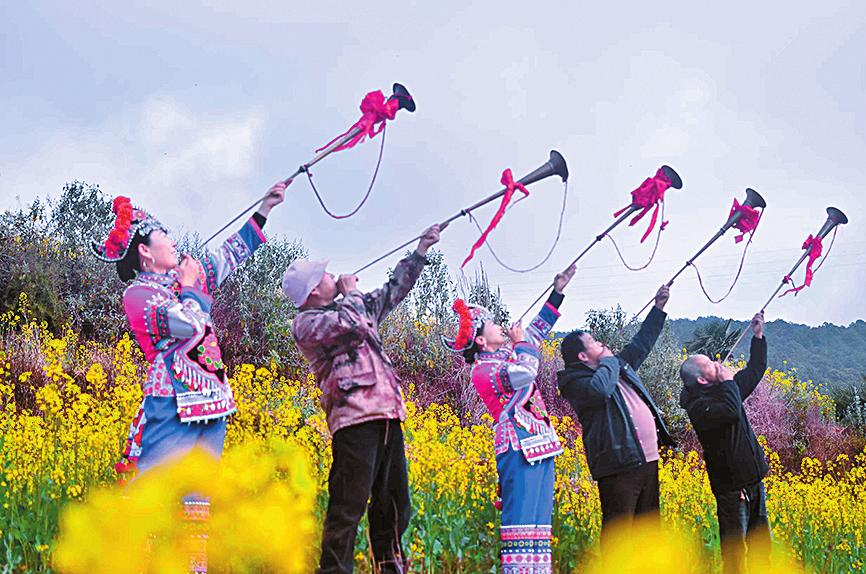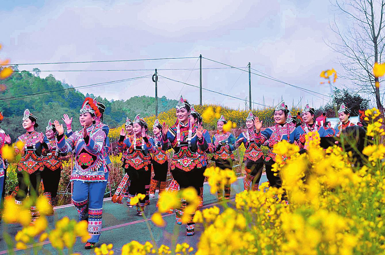 本报讯(记者 沈建龙 文/图)春日暖阳,菜花飘香。2月5日,峨山县一年一度的传统节日——开新街及系列活动在富良棚乡拉开帷幕,当地彝族群众身着节日盛装共赴节日盛宴,在彩旗飘扬的迎宾拱门前欢歌祝酒,喜迎广大宾客的到来。 开新街,彝语称为“哩夕哩”,是流传于峨山县塔甸、富良棚、大龙潭、甸中、岔河一带的传统节日,节期定在每年春节后(正月初二后)的第一个赶集日。节日当天,十里八乡的各族群众都会身着盛装,吹奏着过山号,耍着龙灯,跳着花鼓舞,从各个寨子聚集到集镇上,参加巡街表演、祭龙祭鼓等活动,祈求风调雨顺、五谷丰登、六畜兴旺。与之同期举行的各项文化活动异彩纷呈,集市交易非常活跃。 当天,开新街仪式举行后,富良棚乡举办了丰富多彩的文化活动,为当地群众和游客带来了别样的感受。游客景兰华从红河州河口县退休后常住玉溪,平时经常和家人到玉溪周边游玩。她说:“今天原本计划是来富良棚乡赶集看油菜花,没想到刚好遇到开新街,现场很热闹,很有烟火气,节日气氛非常浓厚。” 今年富良棚乡立足当地特色资源和民族文化资源,举办富良棚乡2025年“开新街”文化旅游节,为来宾们准备了“赏油菜花海、品生态美食、跳彝家欢舞、唱民俗山歌、观花鼓舞龙、赏绚丽烟花”等系列活动。“开新街这一传统节日,是当地彝族同胞对新的一年美好生活的期盼和向往。”富良棚乡党委副书记、乡长李红娇说,在新的一年里,富良棚乡全体干部职工将竭尽全力服务群众,让基础设施建设更加完善,产业结构调整优化更上新台阶,社会民生保障更有力度,群众文化娱乐更加丰富多彩,全力推动社会经济文化高质量发展。 据介绍,今年峨山开新街系列活动将从2月5日开始至2月9日结束。将先后在富良棚、塔甸、岔河、大龙潭等地,举行彝族传统祭龙仪式、祭“花鼓娘娘”仪式、舞龙大赛、花鼓舞大赛、斗鸡表演、千人篝火晚会以及篮球、足球等文化体育活动。在丰富当地群众精神文化生活的同时,不断挖掘当地彝族特色资源,擦亮民族文化亮丽名片,通过文化搭台、旅游唱戏,助力峨山文体旅深度融合发展。 |