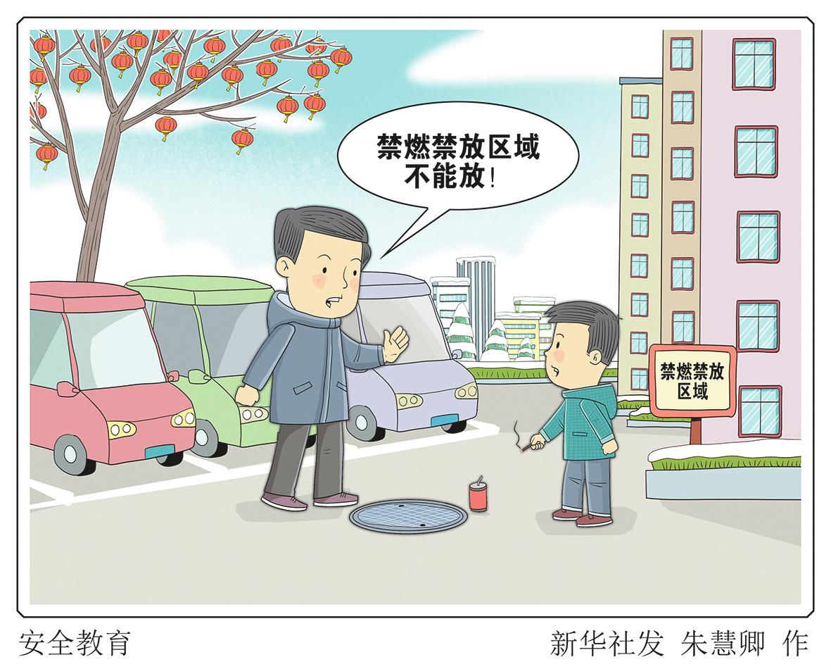 正月里闹新春,烟花爆竹增添了节日喜庆氛围。然而近日有的地方还是发生不当燃放烟花爆竹导致的意外事故,因小孩燃放鞭炮引起沼气爆炸致多辆汽车受损,再次敲响消防安全警钟。 朱慧卿/作(新华社2月3日发)