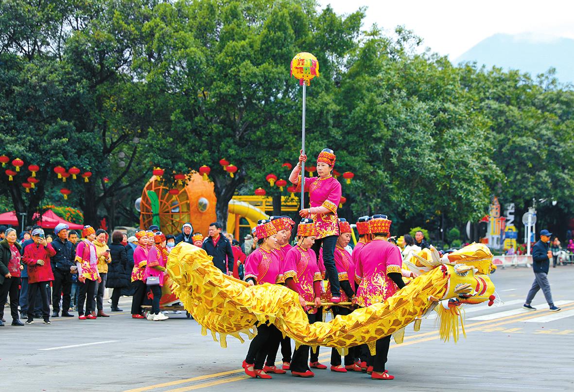锣鼓喧天辞旧岁,龙腾狮舞闹新春。1月29日,元江县举办“我在暖冬元江过春节·非物质文化展演”活动,广大群众和八方游客共享文化大餐,欢欢喜喜过大年。当天,由元江各族群众、各行业代表与旅居人员组成的巡演方队从太阳城广场出发,沿兴元路、向阳路、元江大道、文化路,一路载歌载舞,向沿途群众和游客传递新春祝福。 通讯员 李厚宽 孙桂江 刘政佳 摄