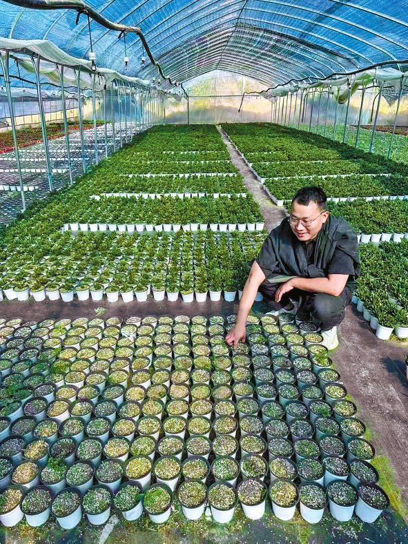 龙头带动 科技支撑 电商添翼 玉溪江川坤宇花卉有限公司董事长陈坤认为,目前,国内多肉市场呈现供大于求的局面,光山多肉产业要在激烈的市场竞争中确立优势,必须依靠科技创新支撑,走规模化、标准化、多样化发展路子,才能确立成本优势、品质优势,提升抗风险能力。 通过推进光山乡村振兴科技创新村项目建设,达成建设10亩多肉育种育苗创新基地、带动农户200户以上、带动从业人员800人以上、村级主导产业产值2000万元以上、线上直播销售收入600万元以上和申请专利5项以上的目标。最终构建起品种研发、种苗培育、成果转化、示范推广、联农带农、品牌建设、市场拓展的多肉产业创新发展模式。 2024年项目启动实施以来,云南农业大学完成了4个新品种选育,申报5个实用新型专利,发表1篇论文,组织开展科技培训2次100人次。在院校和科技机构支撑下,光山多肉产业在科技创新支撑发展上取得了初步成效。 玉溪江川坤宇花卉有限公司在建成710亩种植基地的基础上,通过打造电商创业园,引进电商直播团队,建成直播展销平台,培养6名主播销售人员,吸纳50余名大学生就业创业,构建起以河南省郑州市、山东省青州市为集散中心,面向一线城市,辐射全国和东南亚市场的销售网络。2024年,企业实现销售收入超1000万元,其中电商销售收入占六成。在龙头企业的带动下,光山多肉产业在开拓市场引领发展上取得了新突破。 光山村委会通过与企业携手,立足“党建+科技+企业+合作社+家庭农场+农户+电商”产业创新发展模式,组织动员160多户农户积极参与多肉产业发展,建成22个家庭农场、2个花卉专业合作社,全村多肉种植面积超2000亩,种植品种超400个,实现年销售收入超2000万元。光山多肉产业在依托产业龙头企业,推动规模化、标准化、多样化发展上取得了新进展。