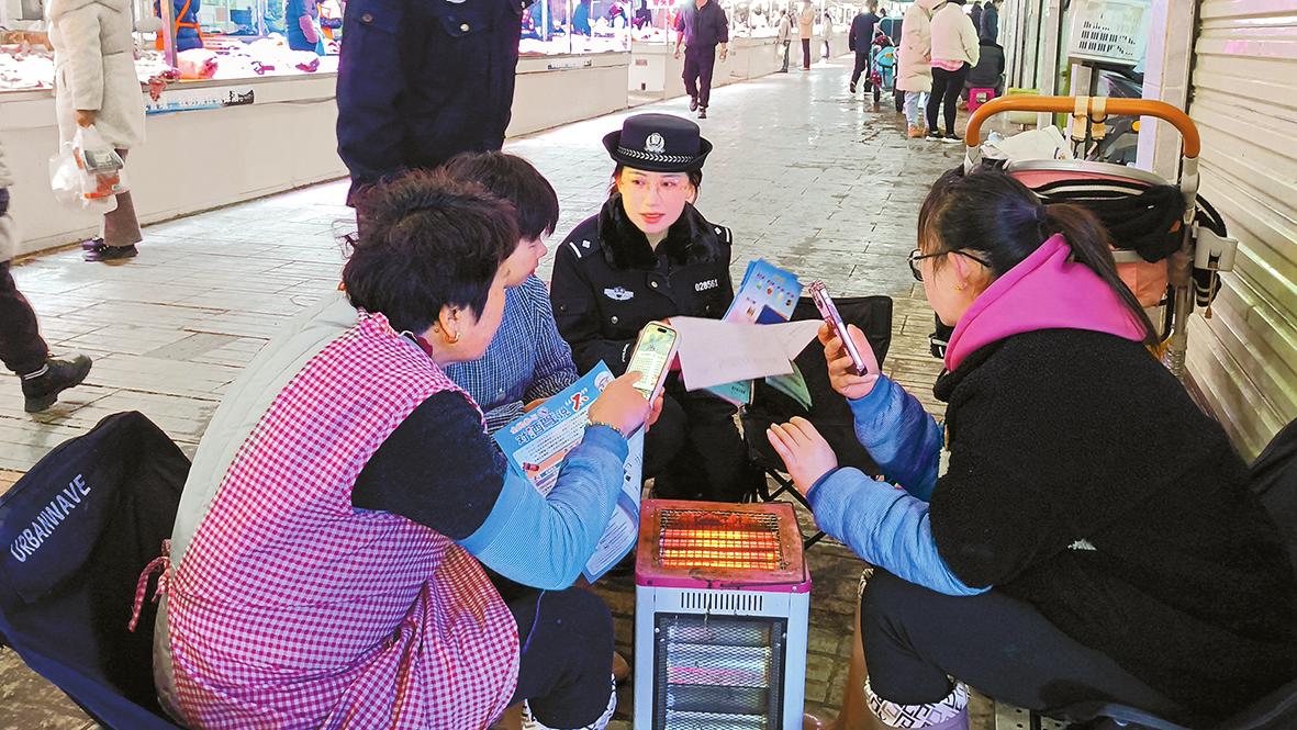 春节,有辞旧迎新的喜庆,有游子回家的团圆,有张灯结彩的热闹,也有万家灯火的平安。 从深入社区开展反诈宣传,保护群众“钱袋子”,到走进市场检查,守好过年“菜篮子”;从化解矛盾纠纷,助力务工人员安心返乡,到加强巡逻防护,热情高效服务旅客出行……春节前后,到处都是澄江公安守护平安的忙碌身影。 守住“钱袋子”,过好幸福年 “如果有陌生号码来电,自称是部队后勤人员,以部队拉练为由订购饭菜、罐头等军需物资,能不能相信?”1月10日,在凤麓市场开展的“全民反诈 你我同行”微宣讲上,凤麓派出所民警向社区居民提问。 “不能相信,可能是冒充军人。”商户李大姐脱口而出。 “对!凡是陌生人打电话或添加微信好友,都要警觉。因为对方可以随意编造名字、身份,大家却没办法核实,很容易掉入诈骗陷阱。”民警李雨薇耐心地解释。通过几个小问题,民警介绍了常见的诈骗套路,引导居民树牢防范意识,自觉管好钱包,谨防上当受骗。 2024年,凤麓派出所帮助社区居民避免了近百万元财产损失。为让辖区群众平安过年,近段时间,社区民警挨家挨户叮嘱,提醒群众加强防范。
