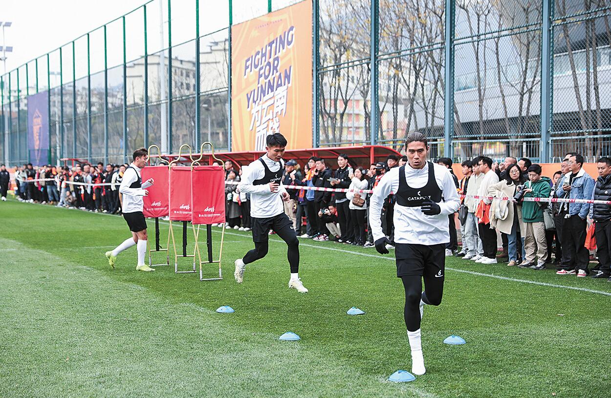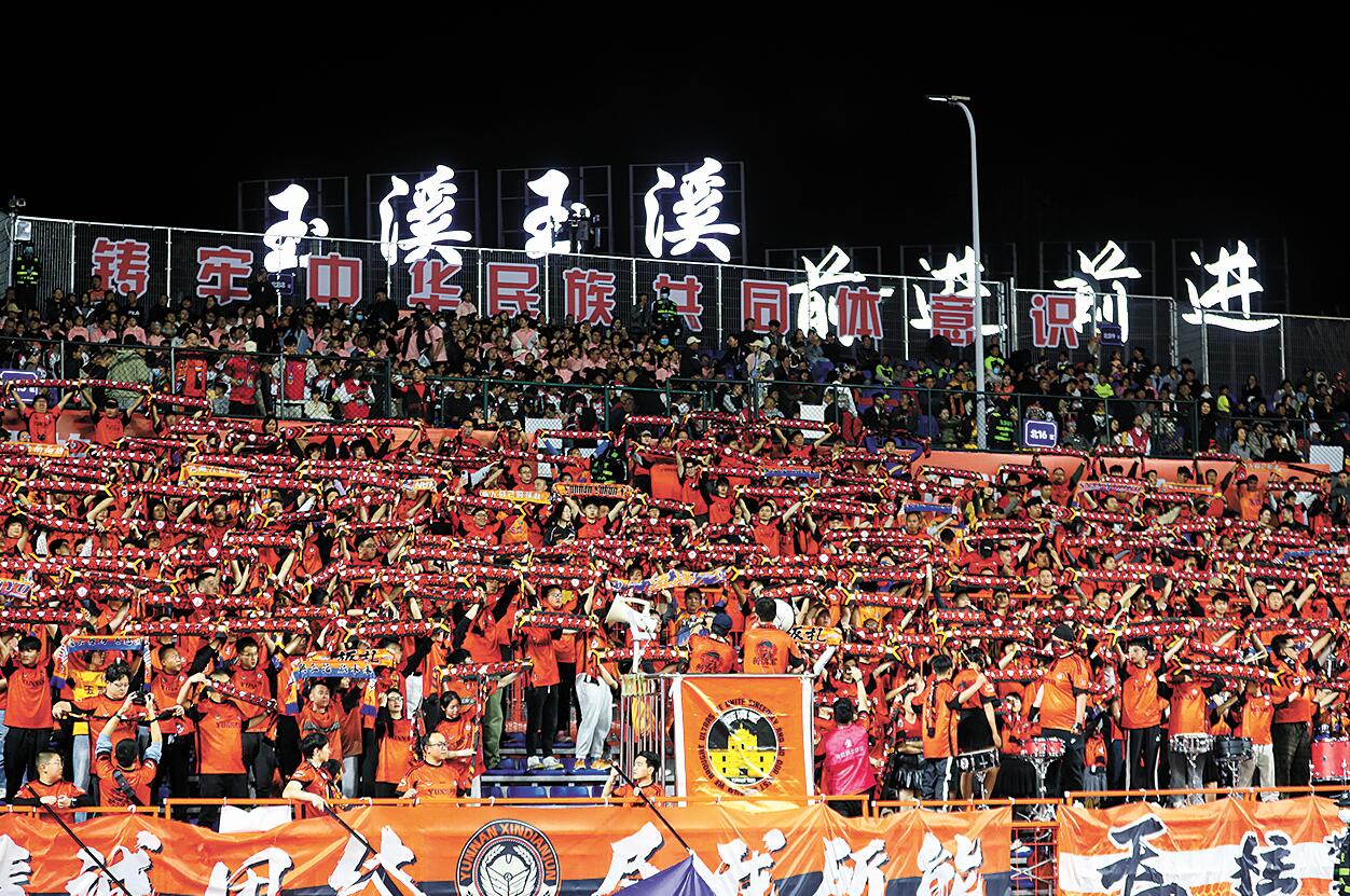 □ 本报记者 沈建龙 文/图 2月22日,2025赛季中超联赛首轮赛事正式打响,“升班马”云南玉昆主场迎战老牌劲旅北京国安,同时解锁云南足球史上首场中超赛事。3月1日,中超联赛第二轮,云南玉昆再次主场迎战浙江俱乐部绿城队,虽然双方1比1战平,但这场比赛让云南玉昆收获了云南足球历史上首个中超进球和首个积分。 在去年的中甲联赛中,云南玉昆提前4轮冲超、提前3轮夺冠,四年实现“三级跳”,时隔21年,云南足球再次问鼎中国足球顶级联赛。“骄人的战绩、火爆的球市”让这片先后孕育了云南红塔、云南玉昆两支中国足球顶级联赛球队的滇中足球热土——玉溪,成为全国球迷关注的新焦点,“玉溪主场干净清爽,玉溪人民有情有义”的主场氛围更是给广大球迷留下了深刻的印象。 今年,随着新赛季的开启,玉溪作为云南玉昆主场城市,将迎来15场中超赛事。为增强主场氛围,提升球迷体验,拓展赛事经济,促进文体旅融合发展,玉溪以足球赛事为牵引,充分发挥中超IP效应,按照“以文塑旅,以旅彰文;以体融旅,以体促商”的要求,从赛事组织、球迷服务、商业运营等方面下足硬功夫,增强软实力,火力全开助燃中超,全力擦亮城市新名片,让“周末到玉溪看比赛”成为时尚,吸引更多的人来玉溪体验“有一种叫云南的生活”。