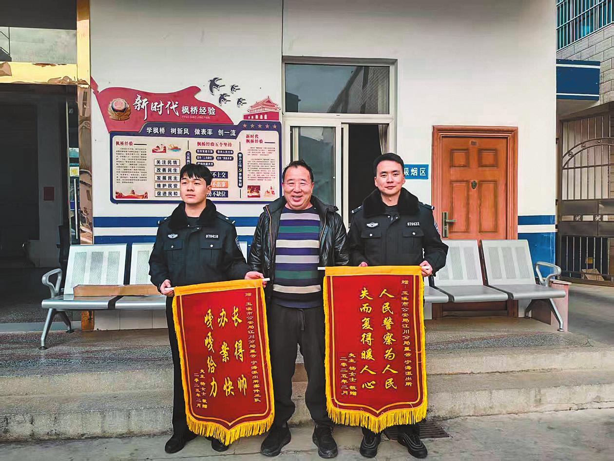 本报讯(通讯员 周发兴 文/图)近日,在昆明读书的杨某某为感谢民警帮她找回丢失的手机,特意定制了一面锦旗,其父认为一面锦旗不足以表达对公安机关的感激之情,又定制了一面,并将两面锦旗送到玉溪市公安局江川分局星云派出所。 1月31日21时许,星云街道的杨某某到星云派出所报警,称自己的一部苹果手机在下营社区老戏台处遗失,手机里存储着重要文件,请帮忙查找。经了解得知,杨某某正在昆明读书,手机里存储着大量学习资料和个人信息。为帮杨某某找回手机,民警调取了现场周边监控,发现杨某某下车时手机掉落在路上,被一位老人捡走了。民警通过现场走访和多方查询,找到捡走手机的老人。但老人称手机已被一名自称失主的男子领走。民警几经周折找到冒领手机的男子,将手机追回并及时发还杨某某。 杨某某对星云派出所民警认真负责的工作态度十分认可,特意定制了一面印有“长得帅 办案快 嘎嘎给力”的锦旗委托父亲交给办案民警。其父看后认为女儿的锦旗还不足以表达感激之情,又定制了一面印有“人民警察为人民 失而复得暖人心”的锦旗。两面风格不一样的锦旗都是群众对公安机关的感谢和肯定。 |