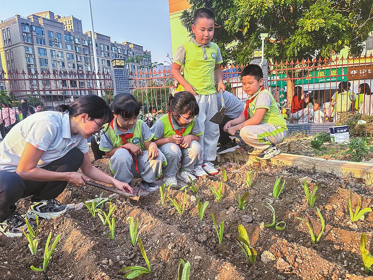 近日,元江第四小学以“一锹一铲种希望,童耕共筑生态梦”为主题,开展了为期一周的植树节系列活动,通过知识普及、实践体验、艺术创作三个篇章,将生态文明的种子播撒在学生心中,为校园添绿添彩。 3月12日植树节当天,全校所有班级同步开展植树节主题班会。各班级教师通过播放动画视频、互动问答等形式,让学生深入了解植树节的演变历程,共同探讨树木固碳和净化空气的功能。四年级(4)班的胡同学说:“通过此次活动,我了解到一棵树一年能吸收大约18千克二氧化碳,每棵树都是地球的‘小卫士’,我们要好好呵护它们。” 各班学生还分批走进童耕劳动实践农场,体验种植乐趣。学生们有的仔细翻整土地,有的根据蔬菜特性进行播种或移栽,还有的学生认真浇水、施肥……种植过程中,大家互相分享经验,就不同蔬菜的生长习性进行交流,一同解决遇到的问题,营造了良好的校园氛围。 学校还面向全体学生征集与植树节有关的绘画、手抄报、手工艺品等,共收到绘画和手抄报作品200余幅、环保手工作品150件,并在教学楼大厅集中展示优秀作品。 据了解,元江四小已连续多年开展植树节主题活动,不断深化生态文明教育,让护绿行动常态化、环保理念生活化。 (通讯员 张婵娟 胥艳 文/图) |