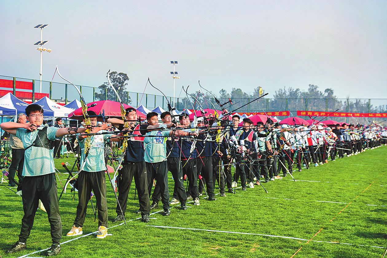 本报讯(记者 张思思 文/图)4月10日,2025年全国射箭协作区锦标赛(第二站)在玉溪高原足球训练基地开赛。 本次赛事由国家体育总局射击射箭运动管理中心主办,玉溪市教育体育局、玉溪体育运动学校联合承办。赛事设成人组、U18组、U16组三个竞赛组别,涵盖个人排名赛、淘汰赛及团体淘汰赛等多个小项,全面检验参赛选手的综合实力。比赛将持续至4月14日。 赛事吸引了来自西藏自治区、内蒙古自治区、宁夏回族自治区、广东省、重庆市、四川省、贵州省、云南省省队以及成都市、自贡市、昆明市、玉溪市、贵阳市等8个省(区、市)及5个地级市的13支代表队、209名运动员及教练员参赛。比赛汇聚了国内多支传统强队与新锐力量,参赛阵容覆盖西北、西南、华南等区域,呈现出赛事规格高、选手实力强、传播覆盖面广的特点。 |