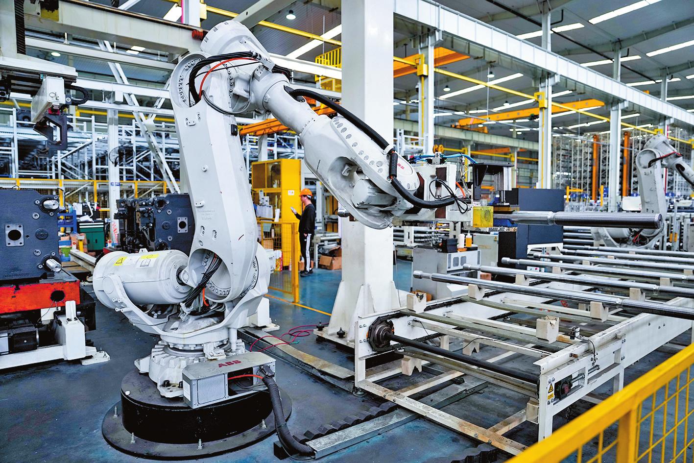 4月9日,机器人在宁波市北仑区海天国际控股有限公司大港生产基地的注塑机产品流水线上工作。近年来,浙江省宁波市北仑区集中精力抓好工业稳生产、促投资工作,因地制宜编制《北仑区重点产业链培育方案》,不断提升全区企业数字化改造水平,打造一批优势产业链群,积极创建龙头企业标杆示范。2024年,北仑区完成规上工业总产值5857.27亿元,同比增长9.6%。