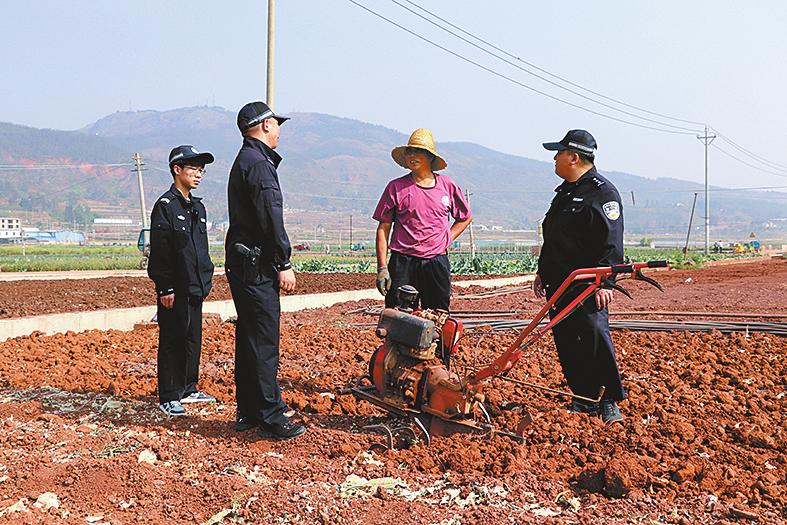 □ 通讯员 黄华 文/图 随着农忙季到来,玉溪警方创新警务模式,将警务工作延伸至田间地头。围绕农业生产各环节,积极开展矛盾纠纷调解、打击涉农犯罪、安全防范宣传等工作,为农村地区生产生活提供全方位的安全保障与服务支持,助力乡村振兴。 李棋派出所: 矛盾纠纷不出田间地头 农忙时节,田地租赁、田地界线、耕地浇灌、农资消费、农机租赁等问题极易引发矛盾纠纷。玉溪市公安局红塔分局李棋派出所把主防关口前移到田间地头,对各种矛盾纠纷早发现、早化解。 近日,社区民警在走访中了解到,辖区两户村民因灌溉用水问题发生激烈争吵,险些动手。民警迅速赶到现场,一边安抚双方情绪,一边详细了解事情原委。原来,由于近期干旱少雨,水源紧张,双方在用水分配上产生分歧。民警联合社区干部,根据实际情况制定了合理的用水方案。最终,双方达成和解,灌溉用水问题得到妥善解决,农耕生产顺利进行。 “请在场群众和社区干部做个见证,今天我们量好尺寸,把两家地界划分清楚。”近日,李棋辖区两兄弟因自留地边界划分问题引发争吵,社区民警闻讯赶到现场处置。民辅警分头走访双方邻居、亲属,调阅社区的自留地底册资料,初步确定两家地界,又邀请司法所工作人员和社区干部到场参与测量调解。最终,双方签订和解协议。 李棋派出所充分发挥“一村一警”等基层治理优势,联动群防群治力量进村入户,全面排查各类涉农矛盾纠纷,强化现场调解、专业调解,真正实现矛盾不出田间地头。今年开春以来,9名社区民警累计走访群众千余人次,在田间地头化解32起“春耕烦恼”,让98%的涉农纠纷“在抽穗前”化解。 龙街派出所: “蓝莓警务”助农护农 5月,澄江市龙街街道万亩蓝莓迎来采摘黄金期。澄江市公安局龙街派出所“蓝莓警务”应运而生,民辅警穿梭在蓝莓基地、企业和农户家中,用实际行动助农护农。 “蓝莓价格好,总担心有人偷。现在随时看到你们巡逻,还提醒我们加装安防设施,晚上可以睡个安稳觉了。”果农王大哥乐呵呵地说。 龙街街道有7300余户农户从事蓝莓种植,和蓝莓有关的合作社、基地、公司有300余家,丰收季治安防控压力倍增。龙街派出所联合多部门组建由社区民警、治保力量、网格员、企业安保力量、农户及蓝莓会员代表等组成的义务巡逻队,整合社会视频监控等资源,重点加强对蓝莓基地全方位巡防,做到白天见警察、晚上见警灯、全天候视频监控,严防偷盗蓝莓和故意损毁果树等案事件发生。 “大家在分拣、包装时要小心,时刻把安全生产记在心上,高高兴兴上班,平平安安回家。”4月17日,龙街派出所社区民警李富春在蓝莓加工车间进行安全检查时对工人说。 为加强蓝莓车间安全管理,确保隐患清零,龙街派出所社区民警定期到蓝莓企业车间开展安全宣传教育、消防技能培训,对安全生产制度是否落实进行全面检查,让安全生产工作落实到企业生产每个环节。 雄关派出所: 安全防范做到农户心里 “大哥,现在诈骗分子套路不断翻新,近期多发假种子、假补贴等电信网络诈骗案,千万不要轻易转账,要通过正规渠道采购农资。”“商家一定要严把进货关,采购正规合格的种子化肥,不要为了利益触犯法律,坑害老百姓。”在辖区一家农资店,民警一边检查农资产品,一边向农户和经营者宣传法律法规。 春耕备耕,农资先行。种子、农药、化肥等农资产品迎来购销旺季。为切实保障农户权益,玉溪市公安局江川分局雄关派出所与市场监管等部门开展农资市场专项整治行动,深入农资经营商铺开展执法检查,实地查看种子、农药、化肥等,全面摸排制售假冒伪劣农资犯罪线索,重点对农资经营者的主体资质、农资产品的来源和质量、农资产品价格等进行检查登记备案,要求经营者诚信守法经营,严防假冒伪劣种子、化肥、农药流入市场。 “大哥,使用微耕机犁田一定要注意安全,每年都会发生多起微耕机伤人事件,一定要定期保养、规范操作。”田间地头,民警提醒农户安全使用微耕机。 为了确保农忙时节辖区道路交通安全,雄关派出所调整勤务模式,一方面通过农村“大喇叭”宣传交通安全常识,一方面紧盯酒驾、醉驾和农用车、三轮摩托车违法载人、违法载物及超载等交通违法行为,深入开展农村道路交通安全整治工作,最大限度保障群众安全生产、平安出行。3月以来,共查纠各类交通违法行为200余起。 春夏农耕生产是农民的大事,也是派出所警务工作的重要“责任田”。下一步,全市公安机关将持续深化“百万警进千万家”活动,常态化推进“春耕护农”行动,切实解决群众急难愁盼问题,为乡村振兴贡献公安力量。 |