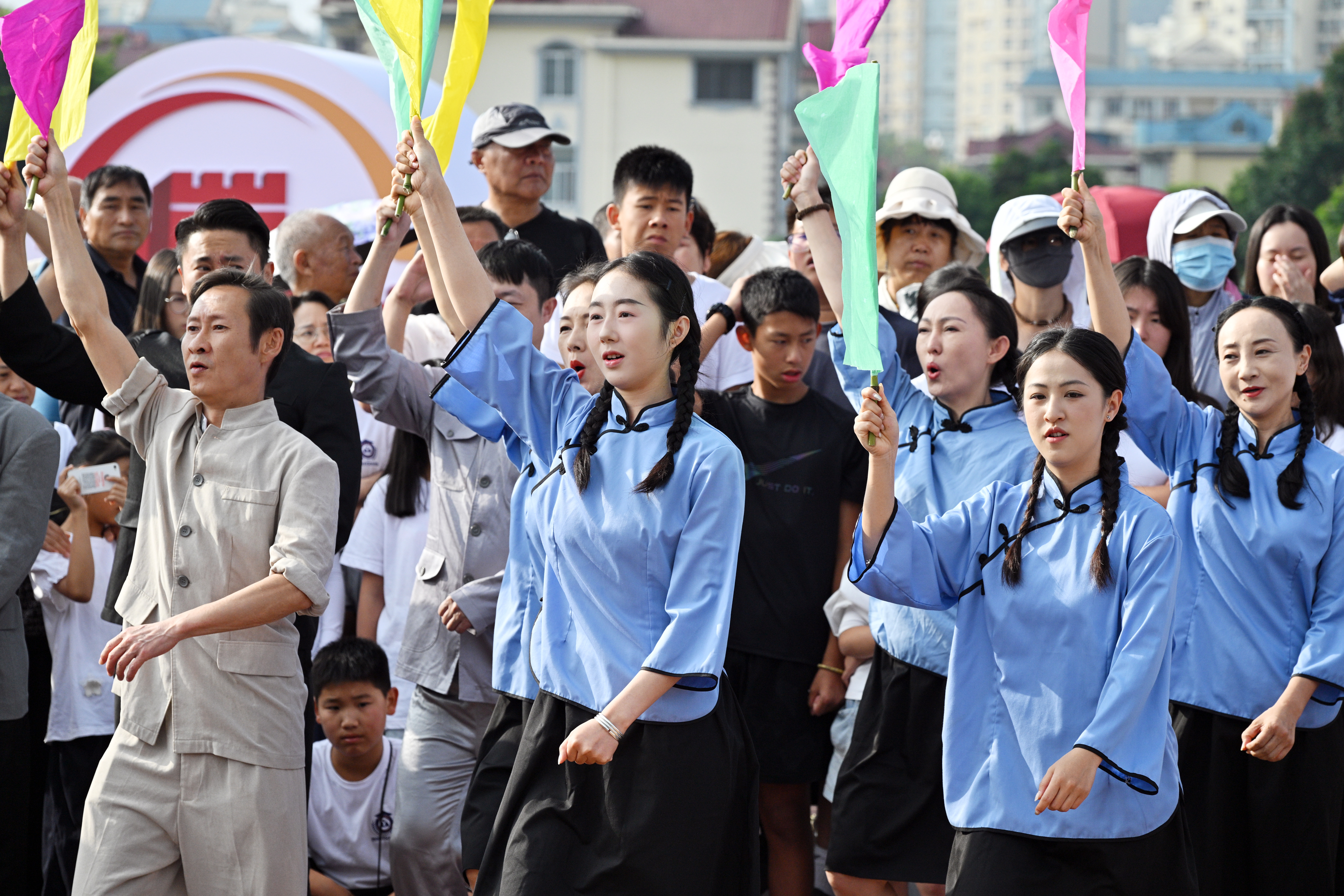 聂耳作品交织“闪”现 从童声合唱到全民共唱 聂耳故乡“同升国旗·同唱国歌”活动一结束,一位聂耳扮相的小朋友拉着小提琴从人群中走出,拉响了聂耳的经典作品《卖报歌》。一群报童扮相的小朋友唱着“啦啦啦,啦啦啦,我是卖报的小行家……”从人群中闪现,边唱边跳。市民自觉腾出空地,拿起手机记录这一刻,有的市民还轻声跟着唱起了这首耳熟能详的《卖报歌》。紧接着,浑厚有力的男声合唱《码头工人歌》让人听罢顿感沉重悲痛。一曲混声合唱《毕业歌》结束了让人意犹未尽的5分钟聂耳作品快闪演绎。 “本次快闪曲目我们精选了聂耳的三首极具代表性曲目,邀请了玉溪聂耳小学的学生和红塔区文化馆、玉溪市红塔区非物质文化遗产保护传承展演中心的演职人员,通过重新编曲和舞蹈编排进行快闪演绎。”红塔区文化馆馆长祝清顺介绍,“快闪由一段小提琴演奏引入活动,从童年聂耳的角度切入,让我们的青少年从小了解‘聂耳和国歌的故事’,从小种下爱国主义精神的种子。同时,也通过聂耳作品的演绎,让大家了解聂耳不同时期作品的创作背景,持续讲好‘聂耳和国歌的故事’。” 在快闪活动的带动下,重庆旅居客邓晓娟一行10人,站在五星红旗下又一次唱起了国歌。“起来!不愿做奴隶的人们……”他们的即兴演唱赢得了市民的阵阵掌声。邓晓娟激动地说:“我们是来玉溪避暑的,刚好赶上这个活动,非常激动。特别是升旗仪式的时候,和大家一起唱国歌,热泪盈眶。很荣幸生活在这样幸福的时代,是先烈们无私的奉献和无畏的牺牲才有了我们现在的幸福生活。”