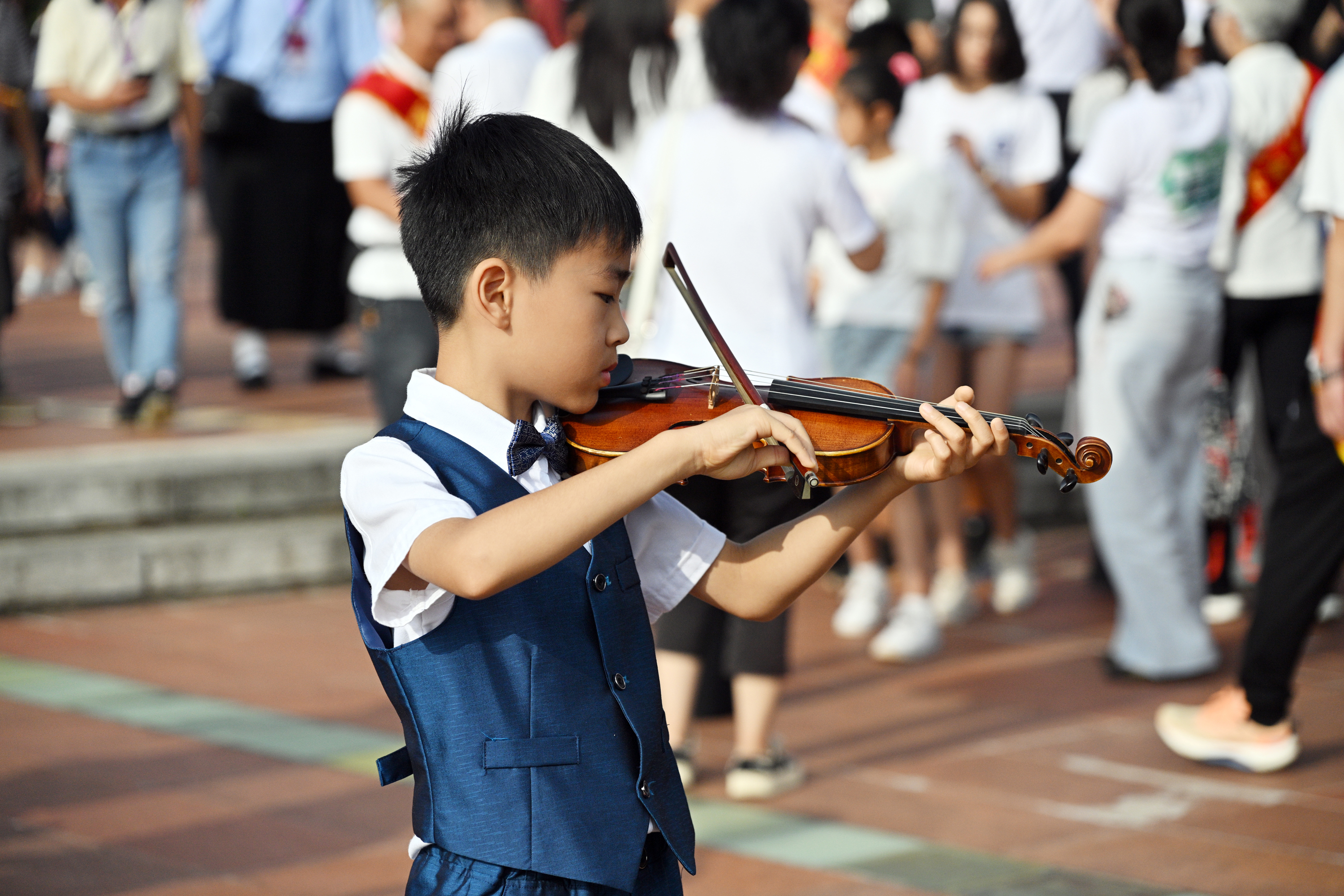 在国旗下在歌声中 铭记历史厚植爱国情怀 在这场意义非凡的活动现场,处处洋溢着浓厚的爱国情怀。“昨天我儿子就吵着要看升国旗仪式,今早7点半我们就来到现场观看升旗。”玉溪市民周美丽牵着7岁儿子闭之维的手,话语间不禁动容,“玉溪是聂耳的故乡,在这个特别的日子里,站在这里看着国旗冉冉升起,整个人都被这份庄重的氛围感染着,心里特别暖。” 人群中,外地游客李优举着手机不停地拍摄,镜头里是飘扬的国旗和一张张真挚的笑脸。“来玉溪本是偶然,却遇到这样盛大的活动,真是处处有惊喜。”她激动地说,“音乐没有界限,聂耳的曲子一响,所有人脸上的表情就是最好的共同语言。” 朝阳下,玉溪聂耳小学学生尹筱涵的眼神格外明亮。“能和聂耳生在同一个家乡,我特别自豪。”她挺直小小的身板,语气坚定,“参加聂耳音乐周活动,让我们接受了一场心灵的洗礼,聂耳的爱国精神会一直激励我们好好学习。” 上海市第二师范学校附属小学学生闫佑安一脸兴奋地分享参与活动的心情。“这是我第一次来玉溪,能参加这样的活动,心里特别激动。”他笑着说,“经历了这次活动,让我心中的爱国情怀更加深厚,以后会更加勤奋学习,努力像聂耳那样,为祖国贡献自己的一份力量。” |