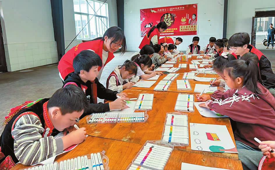 近日,通海县妇联儿童假期服务项目“童成长·嗨起来”在里山乡正式启动。活动根据大学生志愿者的专业特长,设置了绘画、英语、歌舞、儿童健康知识等内容。大学生志愿者深入山区,将丰富多彩的课程送到孩子们身边,用志愿服务为成长赋能,点亮山区儿童的多彩假期。 通讯员 张红莹 钱国有 摄