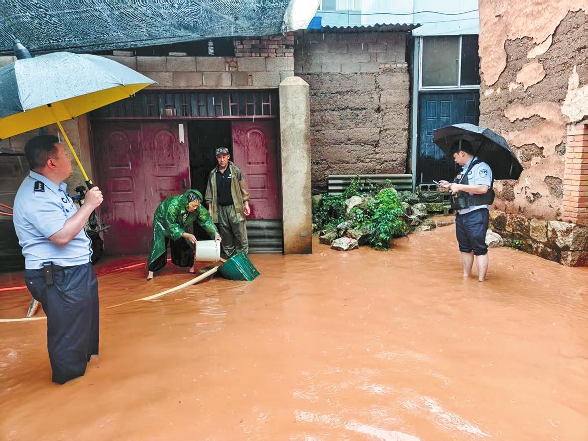 本报讯(通讯员 周发兴 文/图)连日来,江川区持续遭遇强降雨天气,出现部分道路树木倒伏、群众家中进水等险情。玉溪市公安局江川分局主动作为,闻“汛”而动、向雨而行,全力守护群众生命财产安全,在风雨中展现担当作为。 7月26日,降雨导致雄关乡部分村组排水渠堵塞,雨水涌进了群众家中。灾情就是警情,雄关派出所迅速联动村组干部,帮助群众转移重要物资,指导群众排水抢险,向群众普及汛期安全常识。民警不畏风雨,往返于30厘米深的积水中,和村组干部一起疏通排水沟,警服完全湿透。 为有效防范汛期道路交通风险,交管大队加大路面巡逻力度,对辖区急弯陡坡、山体滑坡隐患点、临崖临水路段开展动态排查整治。7月26日19时许,民警巡逻至玉江公路职教小区路段时,发现路中央有大量泥土,存在风险隐患。民警迅速找来铁铲,冒雨将路面泥土清理干净。 “雨天路滑,要谨慎行车。三轮车只能载货,不能载人,一旦出事害人害己。”在前卫镇晋思线牌坊路段,民警在加强路面巡逻的同时,严查交通违法,劝导各类不文明交通行为,提醒群众遵守交规、平安出行。 各派出所紧盯重点地质灾害区域和风险点,对水库、坝塘、河道等重点部位开展“拉网式”动态巡查,发现隐患及时向当地党委、政府报告,确保第一时间处置险情。 |