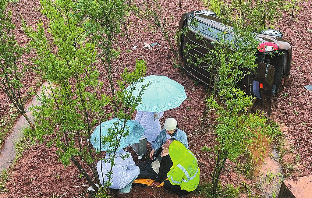 本报讯(通讯员 孙凯 王俐 文/图)近日,一辆小轿车因雨天路滑失控翻下路边农田。接到报案后,新平县公安局交管大队民辅警迅速抵达现场。 绵绵细雨中,事故处理民警看到一名伤者因伤到脊椎无法动弹,蜷缩着身子坐在湿漉漉的泥田里不停发抖。民警二话不说,脱下身上的反光警服,轻轻披在伤者身上,说:“先保暖,救护车马上到!”并让同行辅警找来雨伞,为伤者遮挡风雨。 医护人员将伤者固定好后,民辅警联合医护人员和消防救援人员踏着泥泞的田埂路,合力将3名伤者抬上救护车,随后转身投入事故现场勘查工作中。 这场雨中的救援,因一件温暖的警服、一句贴心的安抚,让冰冷的雨天有了温度。 |