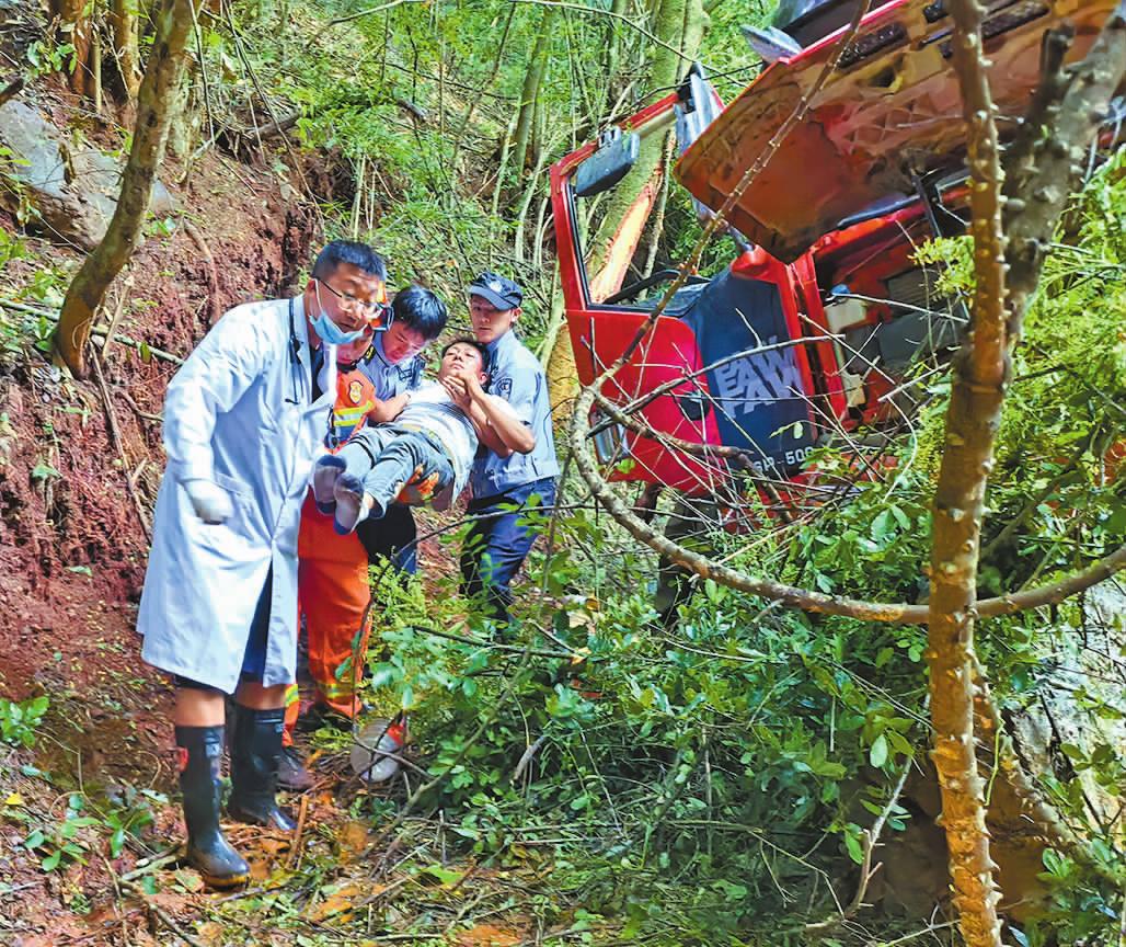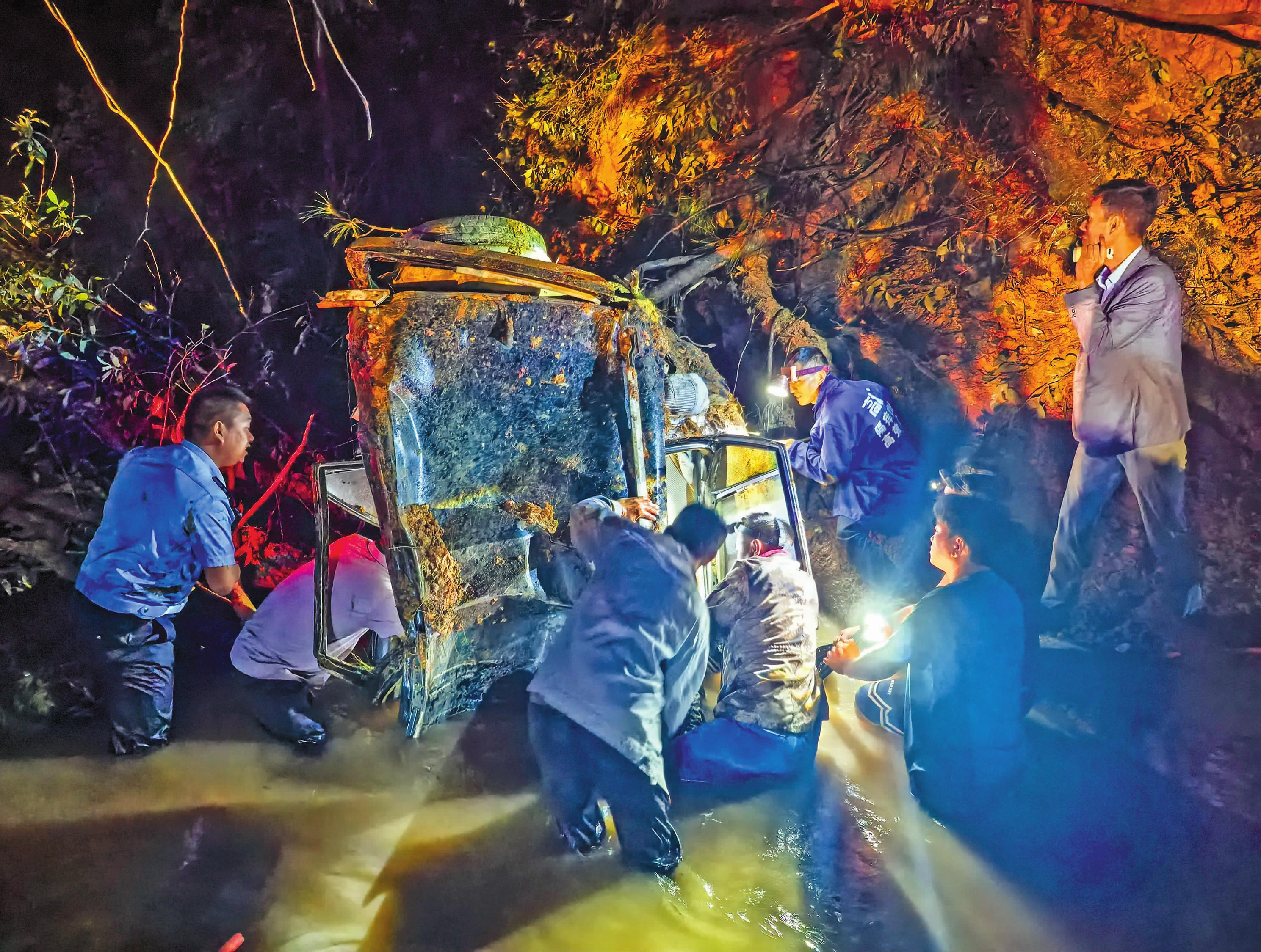 □ 通讯员 郭宇航 朱琳 李晓燕 文/图 八月的玉溪,雨势依旧强劲,部分地方群众因雨水受困。危难之际,玉溪警方联合相关部门迅速投入抢险救援,一线民辅警闻险而动、向雨而行,争分夺秒抢救受困群众,在交通事故、山体滑坡等险情中脚踩泥水、肩背手提,全力守护人民群众生命财产安全,筑牢防汛救灾屏障。 50米深谷里的联合救援 “警察同志!都堵村附近有大货车侧翻了,司机还困在车里,你们快过来!”8月15日19时许,元江县公安局洼垤派出所的报警电话突然响起,热心群众焦急的声音带着明显的喘息,一场紧急救援就此拉开序幕。 派出所民辅警第一时间驱车赶往现场,同时联动120、消防、应急部门协同救援。抵达现场后,眼前的景象令人揪心:一辆大货车侧翻在距离路面50米深的陡坡底部,车体因剧烈撞击严重扭曲,驾驶室被挤压变形,泥土与断枝布满整个坡谷。“赶紧救人!”民辅警毫不犹豫地抓住坡上杂草,踩着松动的泥土,在布满荆棘的陡坡上手脚并用、几度滑倒翻滚,争分夺秒地冲向被困司机。 “师傅,能听到我们说话吗?现在感觉怎么样?”民警冲到变形的驾驶室旁,查看司机状况。发现其虽因撞击导致受伤无法移动,但意识清醒,暂无生命危险。“别害怕,我们马上救你出来。”民警一边安抚司机情绪,一边配合消防救援人员对变形的车门进行破拆。 经过20多分钟的紧张救援,被困司机终于被安全抬出驾驶室。早已等候的120急救人员立即接力,将伤者送往医院进一步检查和治疗。 经事后了解,司机段某驾车经过事故发生地时,因雨天路滑,加上土质疏松,路基承受不住货车的重力,导致车辆侧翻。 山中6小时搜寻营救 为了吃上一顿美味的菌子,三名老人翻山越岭去捡菌迷路。 8月17日20时10分,易门县公安局龙泉派出所接到报警后,立即联合熟悉地形、路线的人员赶赴现场。 因山路崎岖狭窄,车辆无法前行,大家携带手电筒、救援装备徒步进入山林,一边开辟道路,一边喊话搜寻。经过6个多小时的紧张救援,成功找到了3名老人。经初步检查,老人们除了体力不支外,身体无大碍。 “没事了,找到你们就好了,你们休息一下。”民警轻声安抚老人,并递上食物和热水。休息片刻后,民警和救援人员轮流背上老人,一步步走下了山。 “太感谢你们了!要不是你们上山寻找,后果真不敢想象!”看到老人平安归来,家属们紧紧握住民警和救援人员的手连声道谢。 经了解,董某、王某、李某三名老人吃过午饭后相约上山捡菌,18时许准备返程时却发现迷路了,直到20时许都未找到出山的路。因天色渐晚,三人没有携带照明工具,手机信号时断时续,担心出意外,就到有信号的地方拨打报警电话求助。 山体滑坡现场破窗救人 8月16日20时许,峨山县公安局塔甸派出所接到紧急报警:一辆汽车在塔甸镇亚尼路段遭遇山体滑坡,车内人员被困。接警后,派出所立即组织精干警力赶赴现场,同时协调塔甸镇七溪村委会干部协助开展救援工作。 民警抵达现场后,发现滑坡形成的冲击力将车辆推入距离路面20米垂直高度的山沟,车辆在翻滚过程中严重变形,车头呈斜角插入泥塘中,泥水已淹至驾驶室,60岁的司机鲁某受伤被困。民警迅速查看鲁某身体状况,评估周边环境,随后组织救援。民警一边用破拆工具谨慎操作,一边组织群众缓缓挪动伤者。破拆车辆过程中,大家相互喊话,将伤者的二次伤害降到最小。20分钟后,鲁某从车窗被安全抬出。 经现场检查确认,鲁某身体虽多处受伤,但意识清醒。民警与救援群众合力将鲁某抬上早已等候的120救护车,迅速送往医院救治。看着远去的救护车,大家都露出了欣慰的笑容。 |