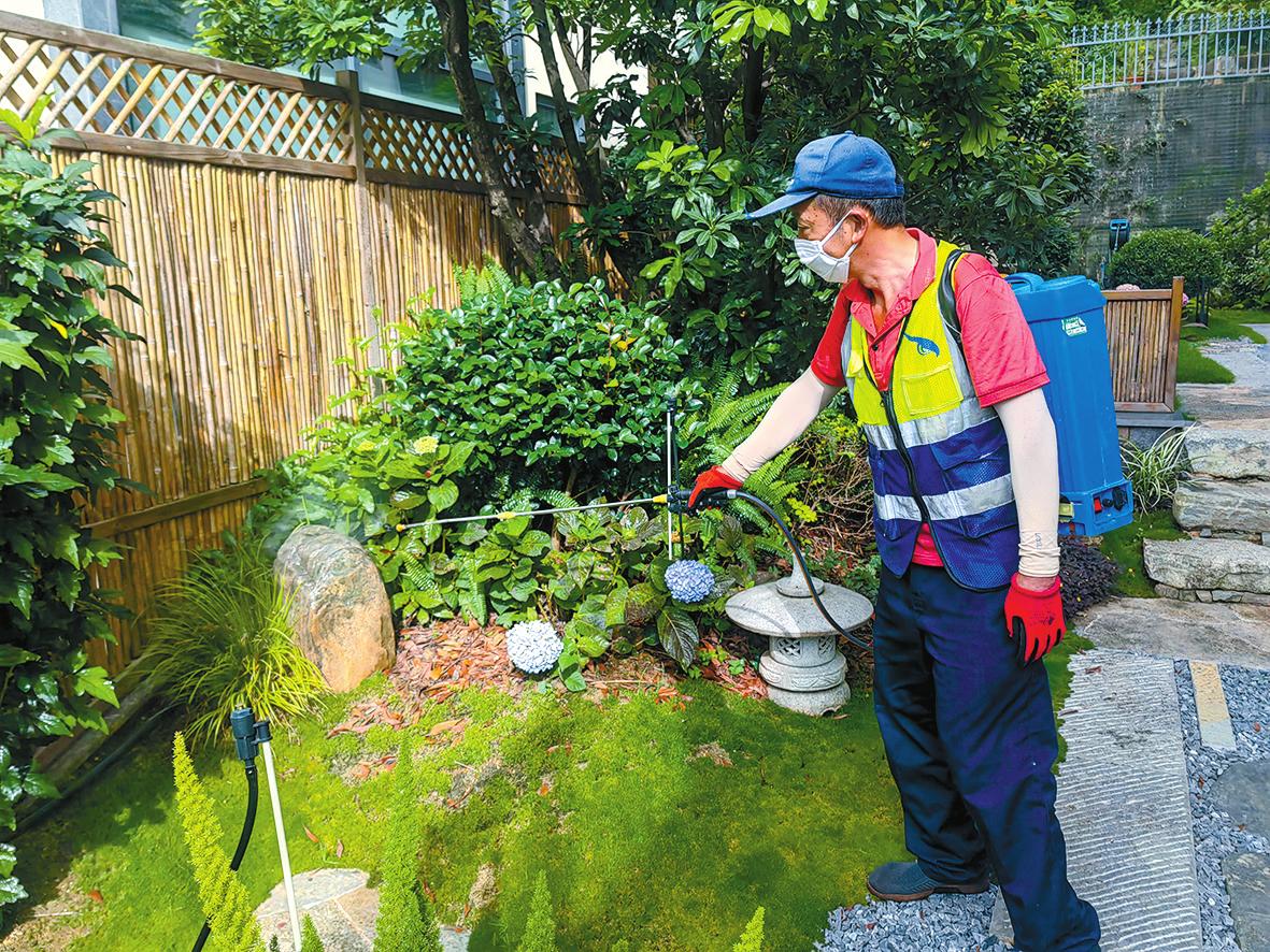 近日,在红塔区玉兴街道山水社区,志愿者和部分物管公司共同开展“科学灭蚊·守护健康”行动,专业人员按照安全规范喷洒低毒环保灭蚊药剂,对小区内的下水道、排水沟、绿化带等区域进行整体的消杀防治工作,并呼吁广大居民积极行动,及时清理家中花盆、水缸、托盘等地方的积水点,从源头切断蚊虫繁殖链。图为专业人员免费到居民家中喷洒灭蚊药剂。 本报记者 白诚颖 摄